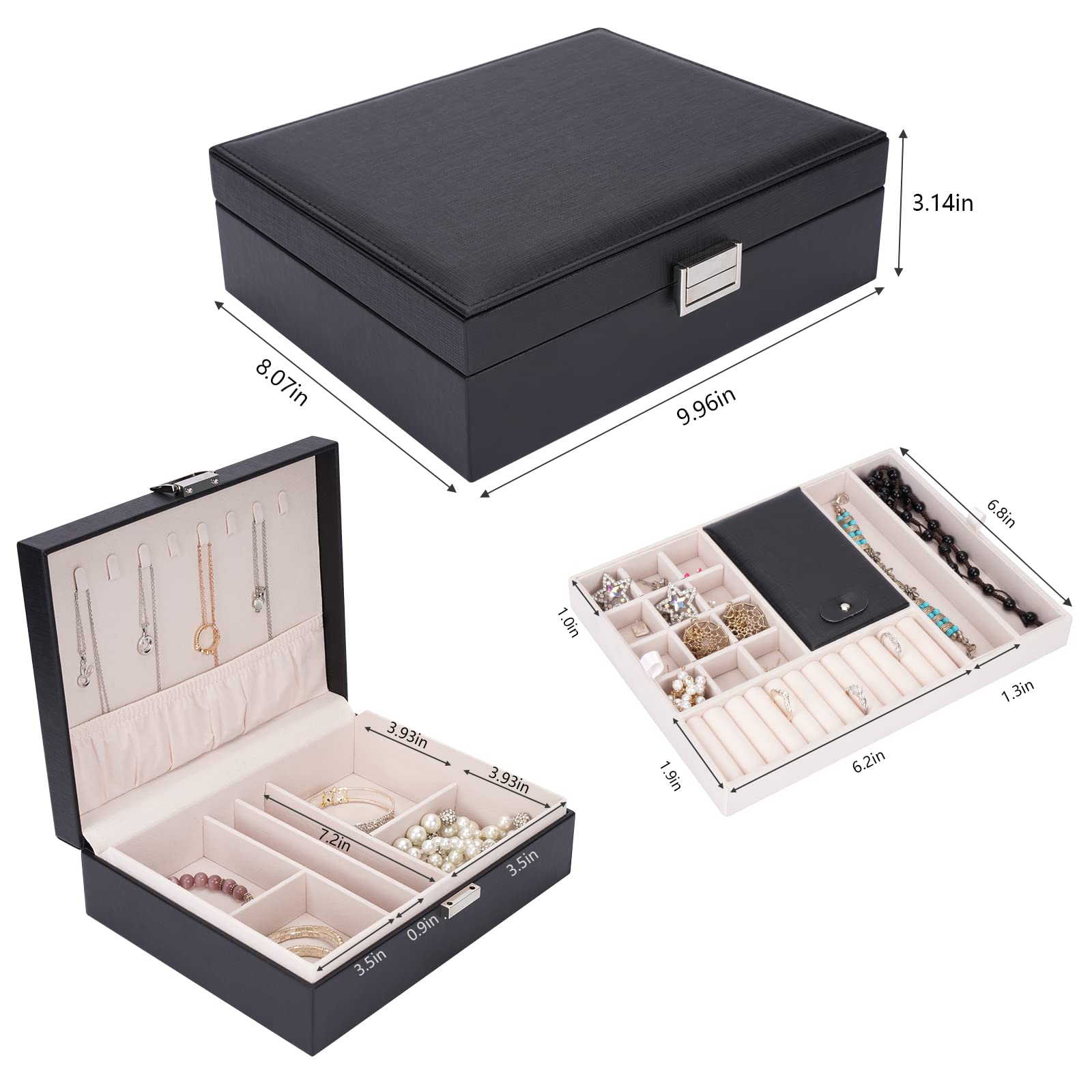 Boite A Bijouterie Boite A Bijoux Rangement Bijoux 2 Couches Boite A Bijoux Voyage Femme 3 Porte Bijoux En Attente Comment organiser mes bijoux ? Sont-ils partout ? Vous avez du mal à trouver une paire assortie chaque matin ? Ou êtes-vous à la recherche de la plus belle boîte à bijoux Pour accueillir vos bijoux ? Cette boîte à bijoux en bois est ce que vous cherchez., ! Organiseur en bois avec des matériaux de la plus haute qualité destinés à durer longtemps. Comment organiser mes bijoux sont-ils partout, avez-vous du mal trouver une paire assortie tous les matins ou recherchez-vous la plus belle bote bijoux pour accueillir vos bijoux, cette bote bijoux en bois est ce que vous recherchez pour tous vos bijoux seront soigneusement organiss et faciles trouver une table de casse-cusage plus dsordonne... Ashata boîte de voyage à bijoux Boîte à bijoux de voyage boîte de rangement de bijoux Portable... Apparence élégante et élégante pour décorer votre maison., 2., L'organisateur de bijoux moderne est livré avec un coffret cadeau qui fera un excellent cadeau pour votre fille, petite amie, épouse, mère ou d'autres femmes de votre vie pour un anniversaire, la Saint-Valentin, Thanksgiving, Noël, etc., 3., La grande boîte de rangement de bijoux de voyage en cuir synthétique rend les bijoux robustes et pratiques avec un tempérament haut de gamme , 4., Organiseur de bijoux de voyage avec 8 cintres avec pochette élastique sur le fond pour empêcher vos colliers de s'emmêler ou de s'emmêler, fonctionne bien comme présentoir de collier pour spectacle. ATAIMEISEN Storage Et Organisateur Bote Bijoux Bote De Rangement Bote De Rangement De Voyage~p114491341 Le support à bijoux à 2 couches offre plus d'espace pour ranger des boucles d'oreilles, bagues, supports, colliers et autres effets personnels , 5., Boîte de rangement pour bijoux 100 % satisfait de votre expérience d'achat, si la boîte à bijoux est endommagée lors de l'expédition ou si vous n'aimez pas quand vous êtes arrivé, changez d'avis, veuillez nous contacter pour remplacer 12 emplacements suffisants pour montrer votre bague, 1., Dimensions de la boîte à bijoux (D x l x H) : 25,4 x 20,3 x 8 cm pour que tous vos bijoux soient soigneusement organisés et faciles à atteindre, plus jamais de coiffeuse désordonnée. Boîte de rangement pour bijoux avec 2 niveaux assez pour organiser tous les 1 espace de rangement couvert pour vos cartes bancaires ou autres effets personnels. La couleur gris-bleu horizon est à la fois élégante et moderne, ce qui en fait un choix parfait pour les personnes qui aiment les Tous vos bijoux seront soigneusement organisés et faciles à trouver.