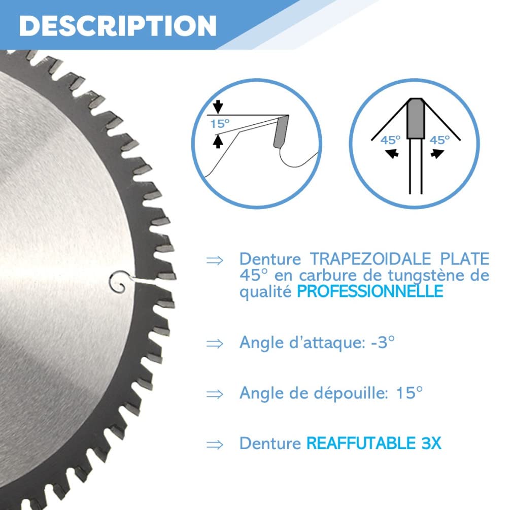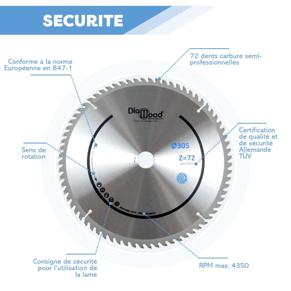 Elle se destine particulièrement aux travaux nécessitant une finition soignée, notamment avec des scies à onglet ou des scies sur table. Tout l’outillage qu’il vous faut Chez Dworx, nous proposons une gamme complète d’outils et de machines adaptés aux besoins des particuliers passionnés comme des professionnels exigeants. Forte de plus de 15 ans d’expérience dans l’outillage et les machines stationnaires, Diamwood propose des équipements professionnels fiables, pensés pour répondre aux besoins du secteur du BTP comme aux projets de menuiserie exigeants. ADAPTABILITÉ MAXIMALE - Fournie avec bagues de réduction d'alésage 25,4 / 20 / 19 / 16 / 15,9 mm, cette lame 305 mm s'adapte à de nombreuses machines. Dotée d’un diamètre de 305 mm et d’un alésage de 30 mm, cette lame est équipée de 72 dents carbure affûtées, garantissant une coupe nette sans éclats. Que ce soit pour équiper votre atelier, entretenir vos outils ou réaliser vos travaux de précision, vous trouverez chez nous des solutions fiables. Son épaisseur de 3,0 mm avec un corps affiné à 2,0 mm favorise une progression fluide dans le matériau, tout en limitant l’échauffement et les vibrations. Lame de scie carbure bois ø300xep.3,2xal.30 mm T&O 17826300 Lame de scie circulaire stationnaire Extreme Workshop 305 x 30 mm, 80... Conçue pour résister aux contraintes d’un usage soutenu, elle supporte une vitesse de rotation maximale de 4350 tr/min, tout en respectant la norme européenne EN 847-1, gage de sécurité et de fiabilité. Réactif et disponible, le service client Dworx est là pour vous accompagner avant, pendant et après votre achat, afin de vous assurer une expérience fluide et sereine. Grâce à sa conception en carbure, elle assure une durabilité renforcée et une performance constante, même lors d’utilisations intensives. Scie Onglet Lame Scie Circulaire DIAMWOOD - Lame De Scie Circulaire Carbure 305 Mm X 30 Mm X 3,2 Mm Z60 - Coupe Bois Tendre Et Lame Scie Circulaire 210x30 Lame Scie Circulaire 165 UTILISATION SUR MACHINES - Compatible scie à onglet et scie sur table, cette lame assure une découpe propre et fluide. Chaque commande est emballée avec le plus grand soin afin d'assurer une livraison en parfait état. DIAMWOOD - Lame De Scie Circulaire Carbure 305 mm x 30 mm Z72 - Coupe Bois Tendre Et Exotique - Pour Scie À Onglet Et Scie Sur Table - Haute Précision La lame de scie circulaire Diamwood est conçue pour offrir une coupe de finition précise et régulière sur différents types de bois, qu’il s’agisse de bois tendre ou de bois exotique. Vous recevez ainsi vos outils dans les meilleurs délais, pour pouvoir passer immédiatement à l’action. Elle convient aux bricoleurs comme aux professionnels recherchant efficacité et qualité de coupe. Qu’il s’agisse d’outils fragiles, de lames de précision ou de machines lourdes, Dworx veille à ce que vos articles arrivent intacts et prêts à l’emploi. Chaque outil est soigneusement choisi pour sa solidité et son aptitude à relever les projets les plus exigeants. Un large choix d’outillage à main et machine Du marteau à la pince, en passant par les clés, les scies, les serre-joints et les outils de mesure, notre catalogue couvre tous les indispensables. Une expédition rapide Nous savons à quel point vos projets ne peuvent pas attendre. Des machines et accessoires pour l’atelier Dworx vous propose une gamme complète de machines d’atelier et d’équipements conçus pour assurer un travail à la fois précis et performant. Une qualité de fabrication irréprochable Chaque outil est sélectionné avec soin pour assurer robustesse et durabilité. L’angle d’attaque de 10° et l’angle de dépouille de 15° assurent une coupe efficace et maîtrisée, adaptée aux finitions précises. Idéale pour scie à onglet, utilisation semi-professionnelle. Notre objectif est simple, vous fournir un outillage complet, accessible et durable, afin que chaque projet soit mené avec succès. Un packaging soigné Vos produits méritent une protection optimale.