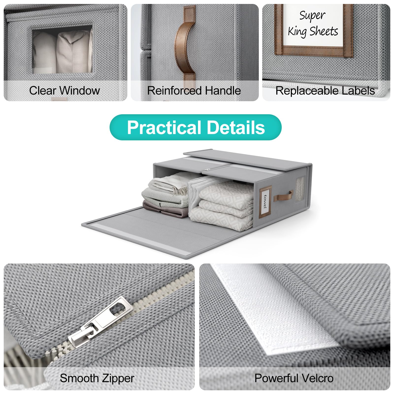 Gris, Lot De 6 Grands Sacs De Rangement Pliables De 90 L Avec Poignées Durables Pour Vêtements