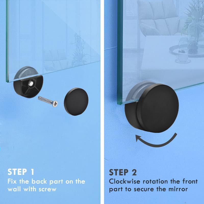 Miroir De Sol KMERCE 2 Supports U00c9tagu00e8re En Verre Murale, Pince U00e0 Verre Ru00e9glable Fixation Murale, Supports D Pince A Verre Vous recevrez 4 supports de montage pour miroir, 4 vis et 4 chevilles à vis. avec une épaisseur de 3 à 5 mm. Contenu de l'emballage : 4 supports de montage pour miroir, 4 vis, 4 chevilles à vis Lot De 4 Cintres Sans Cadre Pour Miroir - Noir - Kit De Matériel De Montage Pour Miroir 4 supports de montage pour rétroviseurs., 4 vis., 4 chevilles à vis., Remarques : 1., Les mesures étant prises à la main, les tailles indiquées peuvent varier légèrement., 2., La couleur peut varier légèrement en raison des différents affichages de l'écran. Application : convient pour le verre de 3 à 5 mm d'épaisseur, les supports de miroir sont parfaits pour les salles de bains, les chambres, les dressings, les ascenseurs, les expositions, les centres commerciaux et d'autres endroits avec miroirs Facile à installer : il suffit d'utiliser une vis pour fixer la partie la plus épaisse sur le mur et de tourner la partie avant dans le sens des aiguilles d'une montre pour sécuriser le miroir Contenu : 1 x emporte-pièce. Matériau : alliage de zinc., Couleur : noir. Construction robuste : fabriqués en alliage de zinc, ces clips résistent à la rouille et offrent un soutien durable à vos miroirs, ils restent bien en place... Les clips de montage sont chromés, la surface noire givrée s'adaptera à votre variété de thèmes de décoration et de types de miroir/verre.