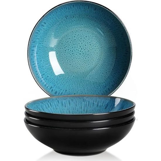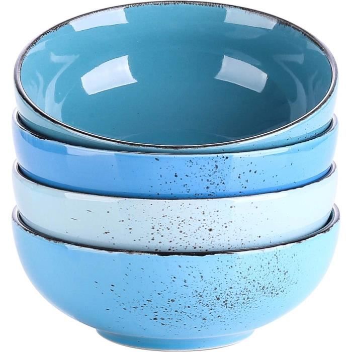 La marque traditionnelle autrichienne MÄSER reprend la tendance scandinave élégante et bien-être avec la collection vintage moderne « Frozen » et montre à quel point la vaisselle en céramique peut être travaillée. About this item Elegant hand-glazed ceramic bowl set in vintage style, consisting of 1 large salad bowl (diameter 26 cm, 1500 ml capacity), 4 ramen bowls (diameter 19.5 cm, 800 ml - also ideal as a soup bowl, pasta bowl or as a generous cereal bowl) and 4 high dip bowls (diameter 10.5 cm, 300 ml. - perfect also as Sauce bowl, rice bowl, for creme brulée and much more.) This serving bowl or... Ensemble de bols élégants en céramique émaillée à la main de style vintage, composé de trois tailles de bols différentes qui sont polyvalents<br/Le set se compose de 1 grand saladier (Ø 25,5 cm, 1 l), de 4 bols à ramen (Ø 19,5 cm, 590 ml – Idéal également comme bol à soupe, bol à pâtes ou comme bol à céréales généreux) et 4 bols hauts (Ø 10,5 cm, 240 ml) – Parfait également comme bol à sauce, bol à riz, pour crème brûlée.v.m. La pulvérisation irrégulière de couleur appliquée à la main rend chaque bol en céramique unique dans ce set de saladiers de service Veuillez noter : cette collection est émaillée à la main, ce qui peut entraîner de légères irrégularités du glaçage, de légères inclusions et des variations de couleur. Le glaçage moucheté à la main à l'intérieur ou sur le dessus attire tous les regards, ce qui rend chaque pièce unique. Afin de garantir une comparabilité objective, nos indications de quantité se réfèrent toujours à un remplissage à ras bord. Tous les éléments de ce set passent au lave-vaisselle et au micro-ondes Cet ensemble est livré dans un emballage de transport testé à plusieurs reprises pour la résistance à la rupture. Le set se compose de 1 grand saladier (Ø 25,5 cm, 1 l), de 4 bols à ramen (Ø 19,5 cm, 590 ml – Idéal également comme bol à soupe, bol à pâtes ou comme bol à céréales généreux) et 4 bols hauts (Ø 10,5 cm, 240 ml) – Parfait également comme bol à sauce, bol à riz, pour crème brûlée., v., m., ) MÄSER Série Frozen Lot De 9 Bols En Céramique Magnifique, 1 Saladier, 4 Bols à Ramen Et 4 Bols à Sauce, Formes Organiques Au Look Vintage, Lasuré à La Main, Grès, Bleu Idéal pour servir soupes,pâtes,céréales,sauces et crèmes glacées. Fabriqué en grès de haute qualité avec un vernis à la main. Passe au lave-vaisselle et au... Test du lot de bols MÄSER Frozen : céramique vintage