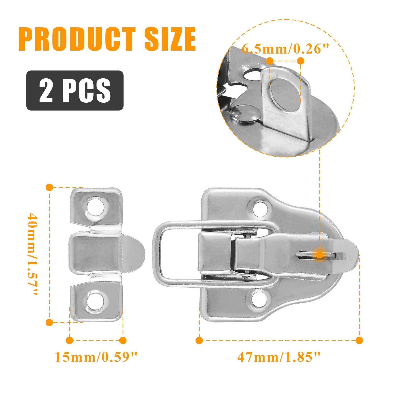 Diamètre du trou de montage : 4,6 mm., Couleur : bronze. - Veuillez noter que pour votre santé et votre sécurité, ce raccord en laiton n'est pas adapté pour l'eau potable. Nombreuses utilisations : convient pour la fabrication artisanale rétro, de caisses en bois antique, de valises, de boîtes à bijoux, de boîtes cadeaux, de boîtes à outils, de coffres, d'armoires décoratives, etc. Lot de 2 Fermoirs Loquets de boite 23mmx28mm Fantaisie Rétro Dimensions totales (L x l) : 62 x 40 mm. Design de style spécial : loquet à bascule avec finition plaquée zinc fin pour un meilleur aspect. Idéal pour sécuriser les boîtes à bijoux, les armoires et les valises, ces loquets sont livrés avec des vis et un trou de cadenas, répondant à de multiples... Facile à installer, sans bords tranchants pour plus de sécurité, il suffit de le fixer avec des vis. Serrure de style rétro avec trou de verrouillage, peut être utilisé pour protéger vos articles. Commandez maintenant en cliquant sur Ajouter au panier Sentier de 100 jours sans risque : nous offrons une garantie de 30 jours et un service client convivial 24 heures. Spécifications :Matière : FerQuantité : 2Crochet de Verrouillage : 43 x 37 mm / 1,69 x 1,46 poucesCouleur : BronzeLe forfait comprend :2 x Crochets de Loquet... Zorfeter Lot De 8 Loquets à Loquet Style Bronze Antique Avec Trou Pour Cadenas Pour Boîte à Bijoux, Armoire, Boîte à Outils, Valises Vintage (avec En cas de problème ou de défaut du produit, vous pouvez nous contacter par numéro de commande Amazon pour un remboursement ou un remplacement.