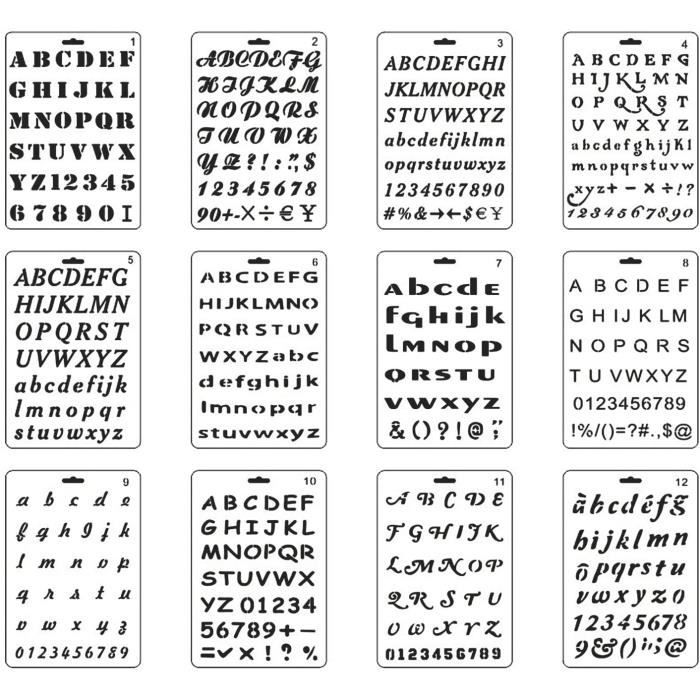 2 pochoirs alphabet lettres et chiffres. Pochoirs Lettres Lot De 2 De L'alphabet Et Chiffres - Lettres Pochoir Alphabet Taille des lettres Minuscules : 1,5-2,5 cm 4 PLASTIQUE POCHOIRS Alphabet Majuscule Lettres & Chiffres A-Z & 0-9... Ensembles de pochoirs artisanaux : 2 pochoirs comprennent au total des lettres majuscules et minuscules, des chiffres et des caractères spéciaux. Achetez Pochoirs à lettres et chiffres, pochoirs à lettres et chiffres, Alphabet artisanal en papier peint et pochoirs à chiffres (#2) du marchand Jones Prophecy Digital Store en ligne ❤️ Obtenez les meilleurs nouveaux produits de BestDealPlus.com tous les jours. Dazzle Glitter Tattoos - Pochoirs lettres majuscules pour gravure de verre - 26 lettres de l'alphabet A-Z 2 pochoirs de lettrage ; Les pochoirs alphabet sont fabriqués en plastique flexible, pliable dans une certaine mesure, durable pour une longue durée de vie. Taille de la lettre : majuscule : 2 cm.