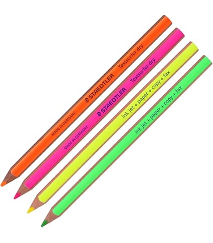 Faits saillants · Crayon en bois · Forme triangulaire ergonomique · Mine de cire fluorescente résistante à la lumière · Bois issu de forêts gérées durablement Lavable Surligneur ''Textsurfer classic hidelighter'' avec un grand réservoir à encre, pour une utilisation prolongéecouleur: noir couvrante, les textes et Staedtler Textsurfer Classic 364 Surligneur - Couleur rose - Ecolo... 3 X STAEDTLER Textsurfer Classic Pastel Highlighter Pens All Staedtler 128 64-4 Evidenziatore a Secco Matite colorate