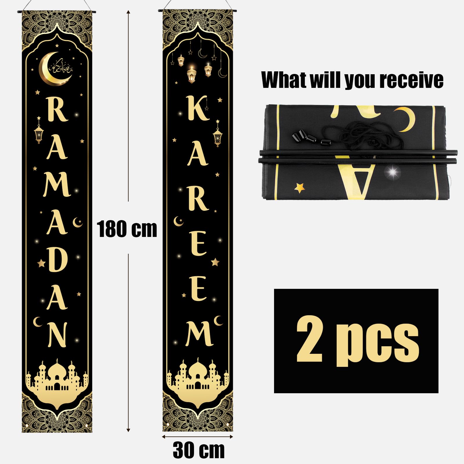 -Les bannières de porte sont à assembler par le client, nous vous fournissons deux tiges en plastique et deux cordes, il suffit d’attacher la corde aux poteaux de chaque côté de la bannière et de la suspendre, comme ça vous pourrez les suspendre facilement sur le dessus. Description: -Parfait pour décorer la fête Ramadan, l'Eïd Mubarak et d'autres festivals appropriés. Porte De La Mosquée Avec Décoration Arabe Eid Ramadan Kareem Fond... Créer une atmosphère joyeuse et améliorer l'ambiance de la fête. Contenu du Colis: 2PCS bannières de porte ramadan kareem Spécification: Matériel: fabriqué en tissu polyester durable, avec touche souple et couleur vive, peut être réutilisé, parfait comme la décoration de porte durant la fête. ⭐Bonne décoration: Cet ensemble est une très jolie décoration de la fête musulmane pour créer une atmosphère agréable, et aussi en bon rapport qualité-prix -Ces bannières de porte sont faciles à accrocher et sont durables, peuvent créer une atmosphère de fête pour vos activités. Bannières De Ramadan Kareem | Vecteur Gratuite 🌙Application: Parfait pour la décoration d’Eid Mubarak, les décorations pour la maison, la décoration de bureau, et aussi comme un cadeau etc. Aussi peut être utilisé pour une ambiance festive, décorer avec la famille et les amis musulmans Conseils chaleureux: -Veuillez permettre une légère différence de dimension en raison de différentes mesures manuelles. Tapis Priere Musulman Techinal 2pcs / Set Eid Mubarak Porche Bannière Mosquée Porte D'Entrée Rideau Drapeau Suspendu Signe Islamique Musulman Fête Décoration Ramadan Kareem Lettrage Kareem Ramadan Avec Design De Décoration D'or , Mubarak... 🌙Le paquet comprend: 2PCS bannières de porte ramadan kareem Taille: 180x30cm/pièce Vous trouverez le détail sur les images du produit.