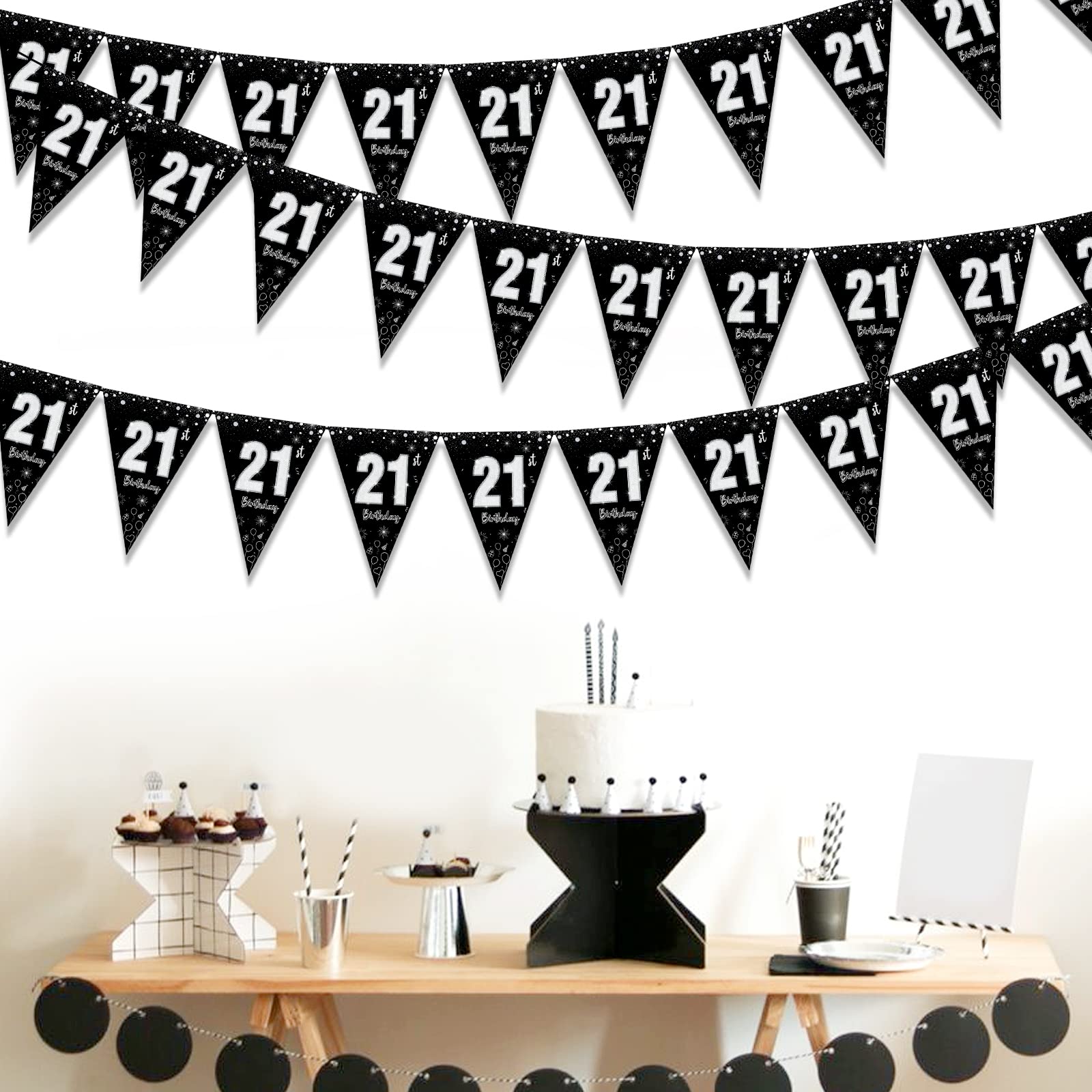 Contenu : 3 fanions Happy 21st Birthday Couleur : noir et argenté. Matériau de qualité supérieure : la bannière de fanions pour 21e anniversaire est fabriquée en papier de haute qualité et les motifs sont clairement imprimés. Bannière pour 21e anniversaire : vous recevrez 3 bannières triangulaires noires et argentées et chaque bannière contient 12 fanions (environ 15,2 x 20,3 cm). Cheereveal 21e Anniversaire Décorations Noir Et Or, Joyeux 21e Anniversaire Porte Bannière, Drapeau Triangle D'anniversaire, Numéro 21 Ballon, Toile De Fond Photo D'anniversaire Pour Les Hommes Femmes Une bonne qualité à prix abordable. Garlandes de drapeaux triangulaires colorés pour la décoration d'une fête d'anniversaire... Quantité : chaque bannière contient 12 fanions. Décorations d'anniversaire noires et argentées - Bannière d Vous pouvez les utiliser pendant une longue période. Design unique : la couleur de fond noir avec paillettes argentées « Happy 21st Birthday » et le motif ballon rendent la bannière plus vive et distinctive. Utilisez-les pour créer des activités mémorables et créer une atmosphère heureuse pour votre famille et vos amis.