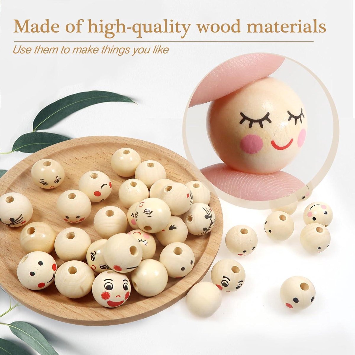 Caractéristique : Le trou d’environ 4mm vous permet de faire plus facilement du bricolage,ces perles peuvent servir à fabriquer la poupée,le bracelet,le collier,la chenille etc. 48 Pièces Perles Bois Smiley Visage, 20Mm Grosses Boules Naturel Avec... Un cadeau pour votre ami,vos proches et votre enfant,idéal pour le loisir créatif. Perles Bois Visage Soldes 40Pcs Perle Ronde En Bois Avec Visage Souriant 20Mm 2 Styles Bonhomme De Neige Ces perles sont faites de bois de haute qualité,le diamètre est d’environ 20mm,référez-vous à l’image pour la taille concrète. 50 perles en bois avec visage,Perle Naturel,Rondes de 20 mm,Avec trou... 15mm Perle imprimé-visage souriant - Perles abalorios Service: Si vous n'êtes pas satisfait de nos produits ou si vous rencontrez des problèmes, n'hésitez pas à nous contacter et nous ferons de notre mieux pour résoudre tous les problèmes que vous rencontrez! 20pcs de perles souriantes avec yeux ouverts et 20pcs de perles avec yeux fermés vous offrent plus de choix,vous pouvez déployer votre imagination lors de votre création.