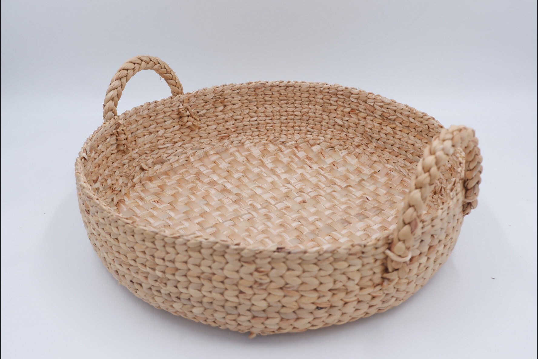 La jacinthe d'eau est séchée et coupée, puis tissée à la main Durable et stable : toute la structure du plateau de service tissé est composée d'un cadre en métal, puis tissée et enroulée, ce qui le rend très solide Conseils chaleureux : cet article est fabriqué à partir de matériaux naturels, de sorte que la couleur sera légèrement différente, et l'odeur du rotin après séchage au soleil Plateau rond ou plateau pour votre décoration de table, plateau à fruits, plateau à pain et plateau, organisateur créatif pour votre maison tissé à la main à partir de 100 % jacinthe d'eau Plateau De Service Rond en Rotin, Plateau en Osier Tissé À La Main... Plateau De Service Rectangulaire Plateau Rond En Jacinthe D'eau : Décoration De Table Basse Plateau De Service Pour Cuisine Rond de Serviette - Jacinthe | Côté Coeur Côté Jardin