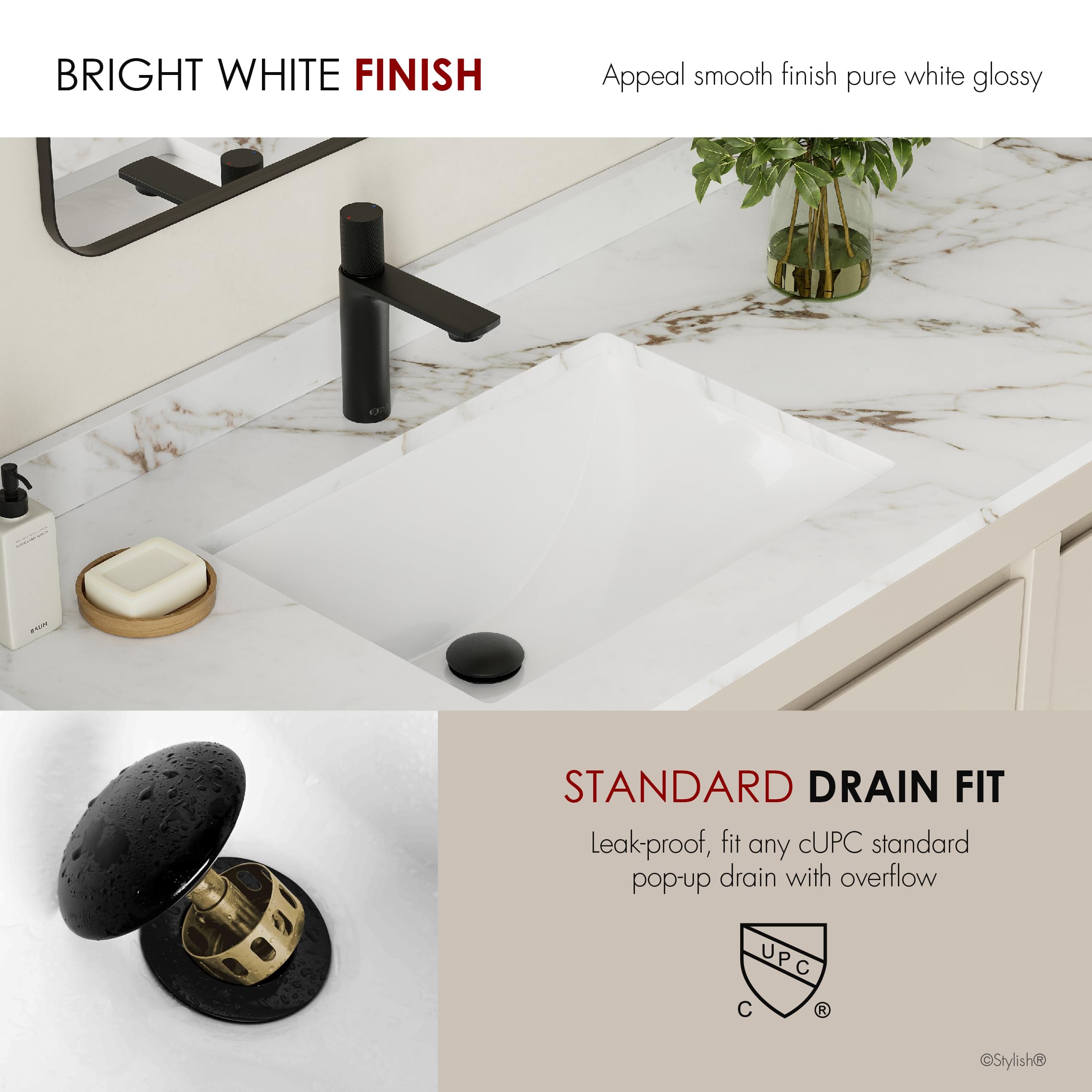 La finition brillante de l'évier de salle de bain rend ces lavabos encastrables faciles à nettoyer et garantit un aspect impeccable pour les années à venir. Ce modèle d'éviers de salle de bain STYLIS est livré avec une ouverture de vidange de 4,4 cm conçue pour les connexions de plomberie standard américaines et canadiennes, convient aux grandes tailles. Gagnez du temps et de l'énergie grâce à ce lavabo de salle de bain moderne blanc extrêmement facile à nettoyer. Miroir de salle de bain lumineux - Miroir 140x50cm rectangulaire Combinant de la céramique de haute qualité, un savoir-faire ultra résistant et des propriétés résistantes aux taches, ce superbe évier de salle de bain rectangulaire en porcelaine blanche est un bel ajout intemporel à votre intérieur. Ils sont livrés avec une finition émaillée pour ajouter de l'élégance et du style à votre comptoir de salle de bain. Meuble-lavabo mural avec double évier en porcelaine blanche et robinets... Rendez le temps de nettoyage amusant : grâce à leur surface lisse et non poreuse, le temps de nettoyage est à nouveau amusant. Ces éviers en céramique présentent une finition intérieure blanche lisse et brillante. Évier encastrable de qualité qui se démarque : tous nos éviers de salle de bain élégants sont fabriqués en porcelaine céramique de qualité supérieure et sont prêts à résister aux déchirures et à l'usure quotidienne. Convient pour un usage personnel et professionnel, hôtels, bureaux, restaurants, bars, salons de coiffure, écoles, magasins et centres de spa. La construction en porcelaine vitrifiée garantit une utilisation durable et la finition blanche s'harmonise avec une grande variété de décors de salle de bains DeerValley Lavabo De Salle De Bain Rectangulaire Sous Plan En Porcelaine Vitrifiée De 16 P Construit selon les normes : ce lavabo de salle de bain a été construit selon les normes les plus élevées pour l'Amérique du Nord.
