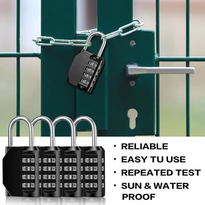 disecu promet la satisfaction du client et un excellent service client. Haute sécurité : le cadenas de type robuste est plus solide que le poids léger, le mécanisme cylindrique à 4 broches et double verrouillage offre une résistance au bloc et au bloc, ce qui réduit la possibilité de marteler ou de levier pour ouvrir. Serrures à Combinaison à 4 Chiffres Cadenas Étanche Réarmable Cadenas La numérotation à 4 chiffres permet des milliers de combinaisons numériques possibles. Matériau de la serrure à combinaison : acier plaqué et métal massif., 4., Poids du verrou à combinaison : 204,1 g par unité. Excellent design pratique et sans clé, fenêtre inférieure pour régler facilement votre propre cadenas. Configurer ou réinitialiser votre propre combinaison est simple et direct. Matériau robuste et durable : le verrou à combinaison robuste est construit avec un corps solide pour plus de résistance et de résistance aux intempéries, l'anse en acier trempé et plaqué de 8 mm de diamètre offre une résistance supplémentaire à la coupe et au sciage. Vous pouvez égoutter un peu d'huile entre les cadrans après avoir utilisé un certain temps, il fonctionnera plus lisse comme n'importe quel autre nouveau verrou. disecu – Lot de 1 cadenas à combinaison robuste à 4 chiffres, anse de 6,3 cm de long, pour extérieur, casier de gym, unité de rangement Les produits internationaux ont des conditions distinctes, sont vendus depuis l'étranger et peuvent différer des produits locaux, notamment en ce qui concerne l'ajustement, la classification par âge et la langue du produit, l'étiquetage ou les instructions. Disecu Cadenas à Combinaison Robuste à 4 Chiffres Pour Extérieur, étanche, Anse De 3,3 Cm Pour Portail, Clôture, Casier De Gym, Casier De Sport (noir. 4.3... Remarque : veuillez vous rappeler / prendre une photo du numéro de code que vous avez défini. La fenêtre latérale combinée vous aide à définir la combinaison plus clairement. La technique de fabrication de la serrure à combinaison robuste est moulée intégralement pour ajouter plus de sécurité par rapport à un verrou léger assemblé. Comment définir ou réinitialiser le code à combinaison., 1., Réglez le code par défaut (0-0-0-0) et tirez la manille., 2., Tournez la manille à 180,3., Poussez la manille vers le bas., 4., Gardez l'anse vers le bas et faites défiler les chiffres pour définir votre propre code., 5., Tirez la manille., 6., Retournez la manille. Cadenas a code 4 chiffres au meilleur prix | Leroy Merlin
