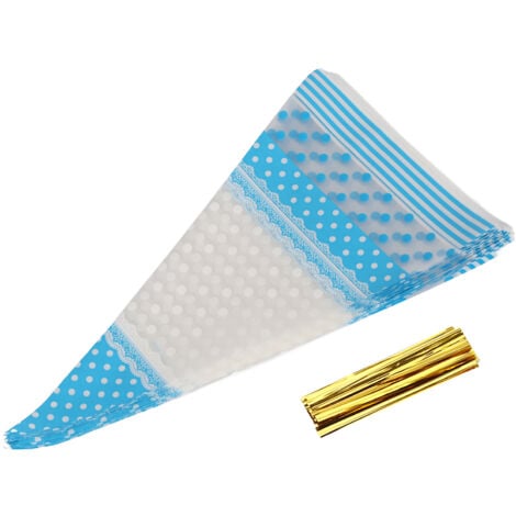 Il est facile de les couper dans le besoin de taille. Ces sachets sont en PET de qualité alimentaire, non toxiques, sans danger pour l’utilisation. Chaque paquet de sacs de friandises est livré avec plus de 50 liens torsadés. PAPIER CADEAU ,A2028-30pcs--Sacs en papier Kraft coloré, sachets de faveur, sachets de Spécifications: Condition: tout neuf Matériau: sous-membrane PET + PE Couleur: bleu / cerise (facultatif) Qualité: 50Taille du moteur: 17 x 30 cm (environ) Emballage inclus: 50 x Sac transparent avec liens à nouer Sachet Bonbon 50Pcs Sacs De Pop-Corn Sachets De Friandises En Forme De Cône Sachet De Bonbon Le paquet de sacs de friandises TEACH est livré avec plus de 50 liens torsadés. Il estmignon pour être utilisé pour emballer des bonbons, des noix, du pop-corn ou des biscuits faits maison. Ils sont d'or et vraiment décoratifs. Sollbry Sacs de friandises en forme de cône, 1630100 sacs de friandises...