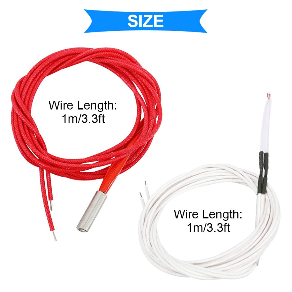 Specification: Ceramic Cartridge Heater : Material: 304 stainless steel Voltage: 24V Power: 40W Diameter: 6mm / 0., 24inch Length: 20mm / 0., 79inch Wire Length: 1m / 3., 3ft 100K ohm NTC 3950 Thermistor: Size: 1., 25 x 2., 0mm glass bead High accuracy: 1% Resistance value at 25°C=100K Wire length: 1m / 3., 3ft Operating temperature range: -40℃ + 300℃ Rated power: 45MW Package Included: 5 x Ceramic Cartridge Heater 5 x NTC Thermistor 100K 3950 10 x Heating Block Cotton 1 x High Temp Tape ✅【CARTOUCHE CHAUFFANTE EN CÉRAMIQUE】Matériau : acier inoxydable 304 ; Tension : 24V ; Puissance : 40W ; Diamètre : 6 mm/0,24 pouce ; Longueur : 20 mm/0,79 pouce ; Longueur du fil : 1 m/3,3 ft ✅【CONTENU DE L'EMBALLAGE】Réchauffeur de cartouche en céramique 5 x 24V 40W 620, thermistance 5 x 100K ohm NTC 3950, 10 x bloc chauffant en coton, 1 x ruban haute température Bloc chauffant Coton: Limitation de température: 900 ℃; Fabriqué à partir de fibre céramique résistante à la chaleur; Il est utilisé pour le maintien au chaud de la buse d'imprimante 3D Cartouche chauffante 620 céramique NTC 100K 3950,thermistance pour... Creality Ender 3 5 Pièces 24V 40W 620 Chauffe-cartouche En Céramique Fil 1 M Creality K1 5pcs bloc de chauffage en aluminium pour MK7 / MK8 imprimante 3D et