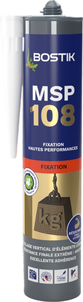 Sa formule MS polymère le rend particulièrement résistant aux intempéries et aux rayons UV. Fabrication Française, Sans solvant ni isocyanate, Classé A+ pour les émissions dans l'air intérieur Particulièrement adapté au collage de panneaux, parements, miroirs lourds ou encore à la fixation de rails pour plaques de plâtre sur carrelage, béton ou sol chauffant Mastique De Fixation Msp 108 Mastic De Fixation Bostik MSP 118 Pour Objets Lourds Blanc Cartouche 290 Ml Colle Pare Brise Mastic Bostik MSP 108 Polymères blanc de fixation hautes performances x5 compatible avec tous les matériaux : brique, béton, pierre naturelle, miroir, fer, acier, aluminium, zinc, matières synthétiques, bois, aggloméré, liège Mastic Bostik MS 108 Polymères blanc de fixation hautes performances... Il peut être peint, même si fonction principale est la fixation. Mastic multi-usages colle et joint Bostik MSP 107 (290ml) blanc... Contenu de la livraison : 1 x Cartouche de Mastic de Fixation MSP 108 Bostik, Couleur : Blanc, Taille : 290 ml, Consommation : 10 m environ de cordon de diamètre 5 mm, Code : 30133127 Compatible avec tous les matériaux : Brique, béton, pierre naturelle, miroir, fer, acier, aluminium, zinc, matières synthétiques, bois, aggloméré, liège, céramique, PVC Mastic de fixation multi-matériaux hautes performances MSP