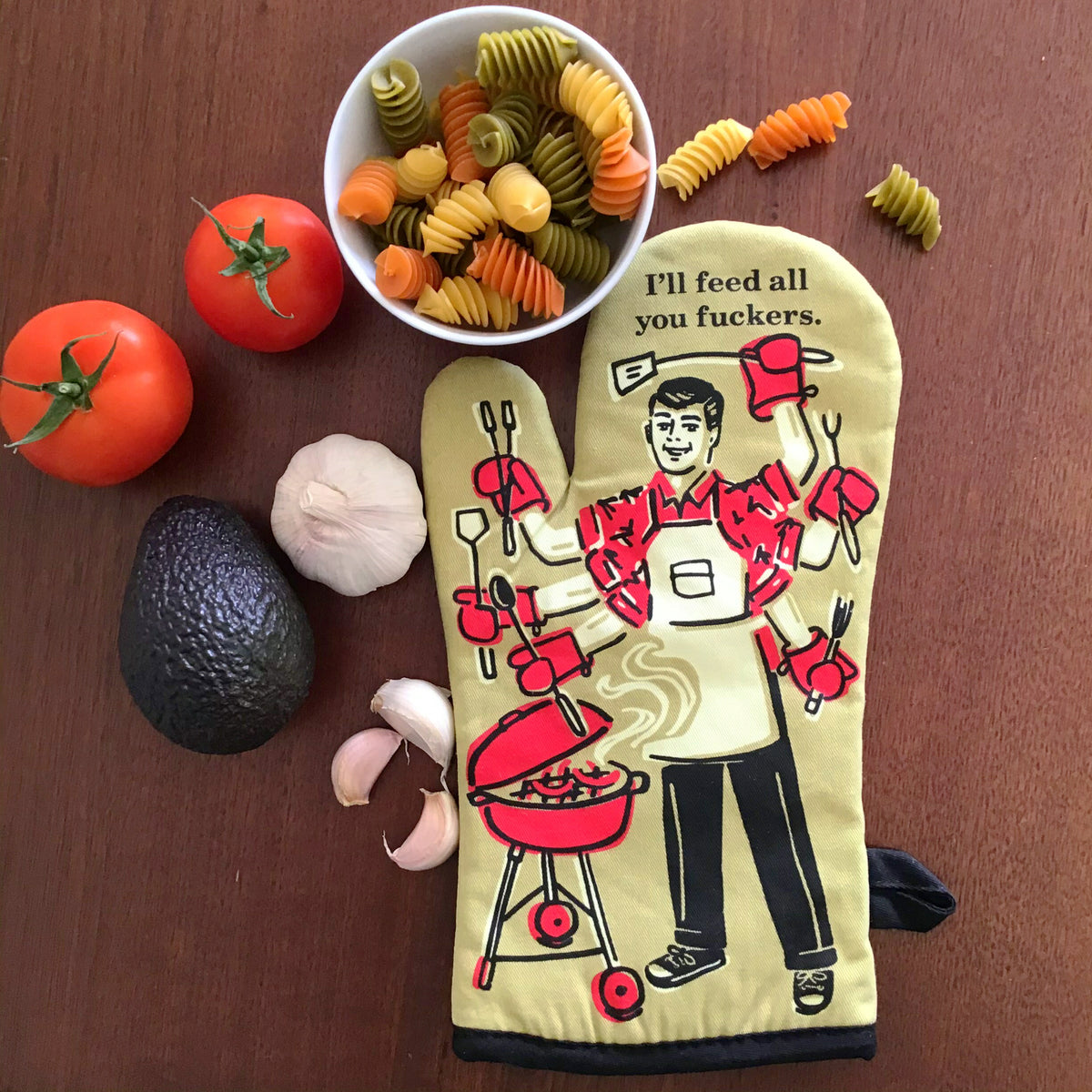 Blue Q Funny Torchon avec inscription « I'll Feed All You Fuckers » 100 % coton, sérigraphié dans de riches couleurs vives. I’ll Feed All You Fuckers Apron ⋆ Spend With Us - Buy From a Bush Retournez – 1% de la vente de cette serviette bénéficie des programmes de soulagement de la faim partout dans le monde. Oven Mitt BlueQ Gant De Cuisine Feed All You Fuckers, I' Ll Feed All You F Beautiful Oven Mitts Se marie bien avec notre gant et tablier du même motif. Tablier de barbecue BlueQ - Feed You Fuckers. Fais attention! J'ai une spatule et je n'ai pas peur de l'utiliser! Fabriqué à partir de sergé 100% coton... Retournez : 1 % de la vente de torchons Blue Q est reversé à des programmes de soulagement de la faim dans le monde entier. Torchon amusant « I'll Feed All You Fuckers » de Blue Q. Dimensions généreuses : 71,1 x 53,3 cm.