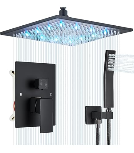 Protection contre les changements brusques de température. Madame Pommeau de douche au plafond Jones® - Chrome - LED - Robinet de... Apporte une expérience de bain confortable. Bouton poussoir inverseur : le design unique du bouton poussoir peut facilement changer de fonction lorsque la main a du savon, cet inverseur à bouton-poussoir ne deviendra pas glissant comme la version à bouton. RTOBWEYE Ensemble De Robinet De Douche à Montage Au Plafond De 30,5 Cm, Noir Mat, Ensemble Combiné De Douche à Haute Pression, Système De Pommeau De Douche à Effet Pluie Haute Pression Montage au plafond Systèmes de douche|Homary Fonction : 2 fonctions, pommeau de douche à effet pluie et pulvérisateur à main. Pommeau de douche de 25,4 cm : le grand arroseur de pluie de 25,4 cm mélange l'eau et l'air pour augmenter la pression de l'eau à 100 %, et simule la pluie naturelle pour vous fournir un contact naturel avec l'expérience de l'eau.