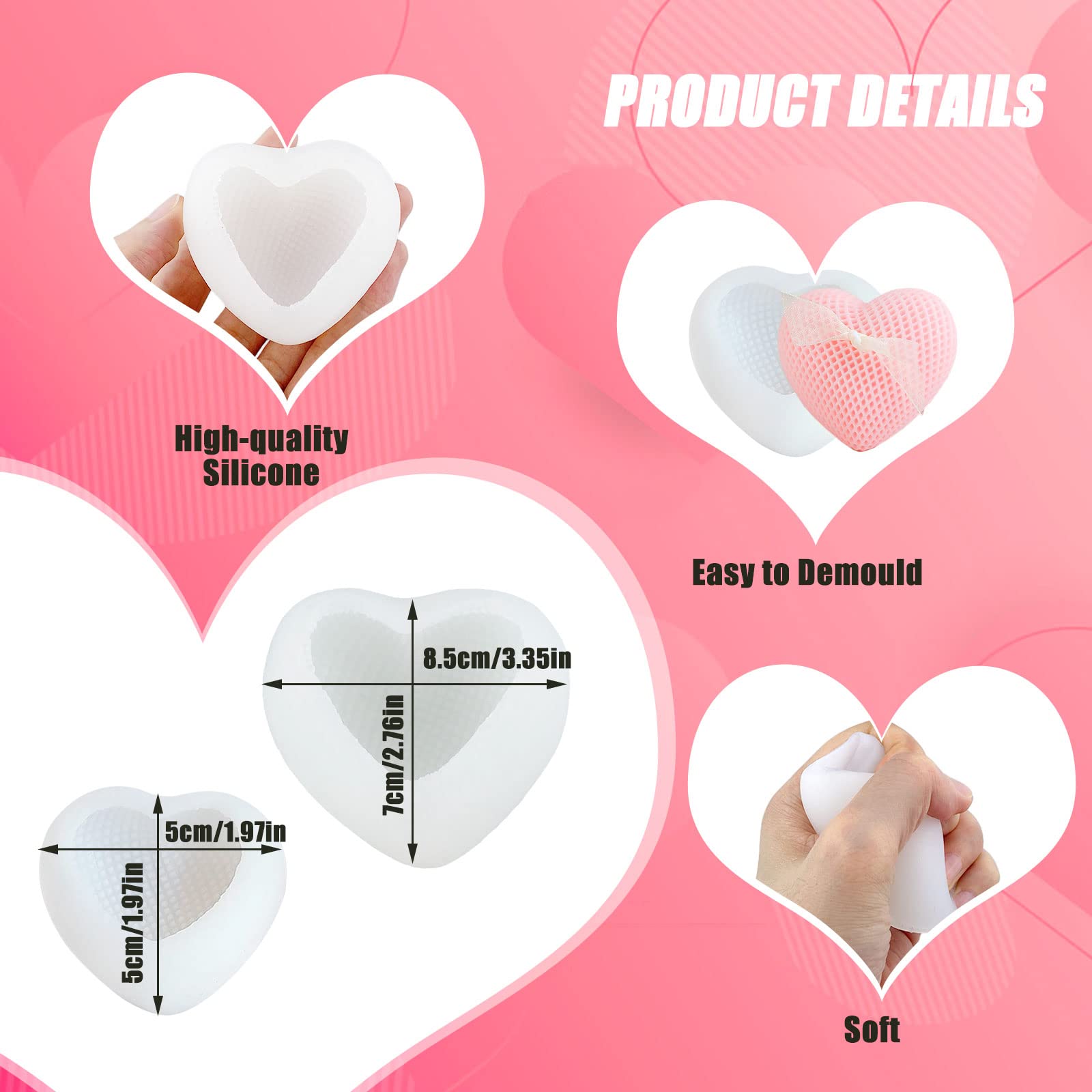 Facile à utiliser : le moule en silicone pour savon d'amour a des propriétés douces, peut être facilement plié et déformé, la surface est lisse, il n'est pas facile de fixer l'objet, de sorte que l'objet moulé peut être facilement retiré. Design délicat en forme de cœur : le silicone moulé en forme de cœur a un aspect en forme de cœur, l'apparence globale est plus belle et exquise, et le moule en silicone en forme de cœur qui augmente la décoration n'est pas seulement un outil pratique pour le porte-cartes de visite, mais aussi une partie de la décoration de la maison. Cadeau parfait] Le moule en silicone Love Cross a des propriétés uniques et personnalisées qui peuvent créer une atmosphère chaleureuse et romantique, vous pouvez l'offrir à vos amis ou à votre famille le jour de la fête des mères, Noël, un anniversaire, la Saint-Valentin et le Nouvel An, le moule en silicone Love Casting Mould rend le cadeau plus précieux et significatif. Résistant à l'usure et anti-adhésif : le moule à four est fabriqué en silicone de qualité, sûr et résistant à l'usure, vous pouvez insérer directement les ingrédients, ce type de matériau est doux et anti-adhésif, les aliments finis peuvent être facilement retirés sans en casser la formeDesign en forme de cœur : ces moules à four en silicone sont en forme de cœur, chacun est... Facile à utiliser : ce moule en silicone en résine époxy en forme de cœur est lisse, antiadhésif, facile à façonner et facile à démouler. Laver avec de l'eau... DM837 Moules En Silicone En Résine époxy Avec Cercle Carré En Lot De 4 Pour Résine Époxy, Bougies Et Savons Artisanaux