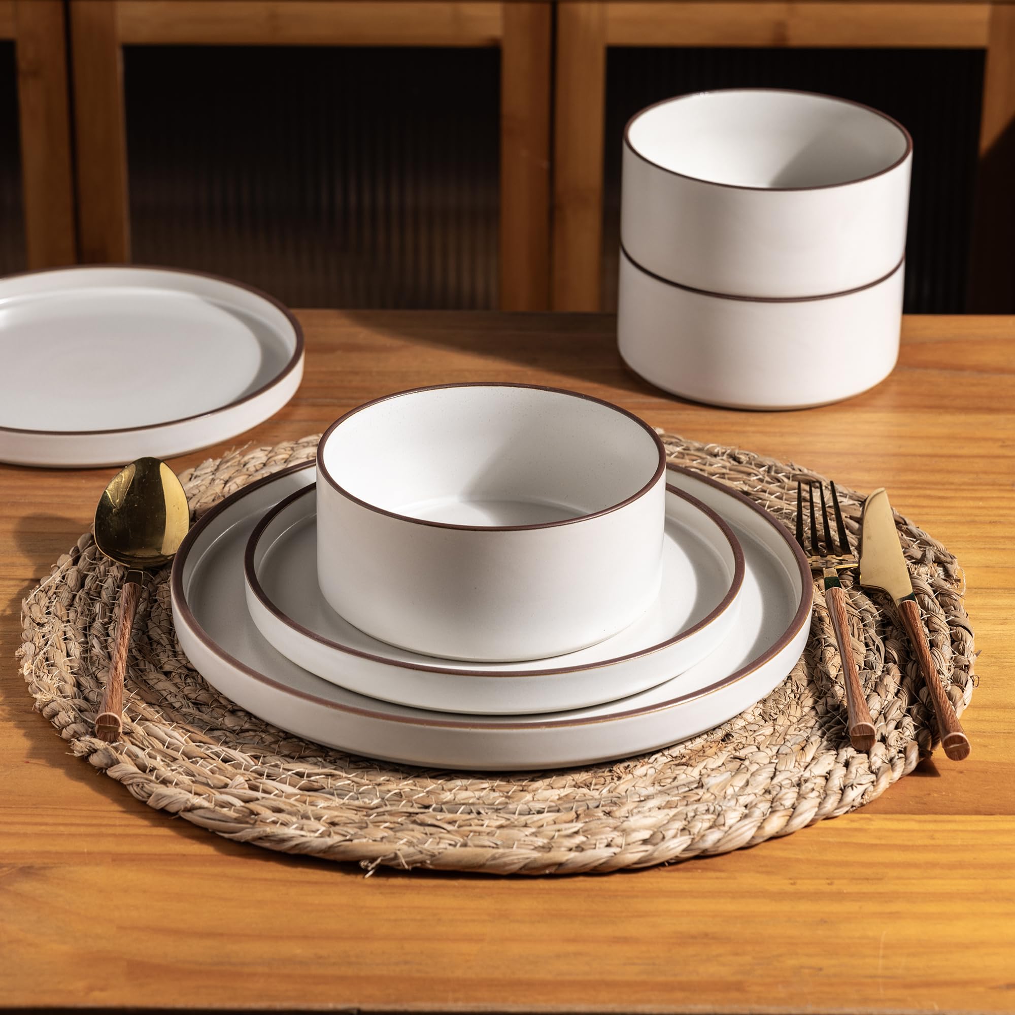Grès non toxique et durable : fabriqué à partir d'argile naturelle cuite à plus de 1 282,2 °C, ce plat en porcelaine est durable, sans plomb et non toxique, offre une excellente stabilité et résistance à la chaleur, sans danger pour servir des aliments chauds et froids, idéal pour les ensembles de vaisselle quotidiens MALACASA Série LUNA Service de Table 18 Pièces en Porcelaine Marbre Caractéristiques : Quantité : 18 pièces., Matériau : grès., Couleur : blanc. Évitez d'utiliser des outils de nettoyage rugueux comme des tampons en laine d'acier pour éviter d'endommager la surface., 3., Méthodes de rangement : ces assiettes et bols peuvent être empilés pour le rangement, économisant de l'espace. Si vous choisissez de les laver à la main, essuyez-les doucement avec un détergent doux et une éponge douce. Parfait pour les repas quotidiens, les dîners formels et les invités divertissants. Pratique pour réchauffer les restes Soyez assur que chaque article a t soigneusement inspect pour garantir son arriv e s re sans casse, Design unique fabriqu la main ces ensembles de vaisselle sont con us par des artistes professionnels, disposent d'une finition maill e r active unique, la surface des assiettes changera de couleur lors de l' clairage. Facile à nettoyer et un excellent choix de cadeau, c'est un incontournable pour votre maison. Mais lors de l'empilage, assurez-vous que les bouches du bol sont sèches pour éviter de coller entre les bols en raison des résidus d'eau, ce qui peut les rendre difficiles à séparer. Le vernis est extra fort pour viter les rayures, gardant un aspect neuf m me apr s des ann es d'utilisation. Nom de la collection : forêt nuageuse Caractéristiques : Non toxique, sans cadmium et sans plomb, passe au micro-ondes et au lave-vaisselle, robuste et durable, résistant aux éclats et aux rayures. Joyfair Service de table pour 6 personnes, 18 pièces, en grès résistant, rayures, assiettes plates, dessert, bols céréales, micro-ondes, lave-vaisselle, kaki... À propos de notre ensemble d'ustensiles en silicone E-far pour 6 personnes, un mélange parfait de style et de fonctionnalité. Lorsque vous servez des aliments chauds, il est recommandé d'utiliser des tampons résistants à la chaleur pour éviter d'endommager la table., 2., Points de nettoyage : puisqu'ils passent au lave-vaisselle, vous pouvez directement les mettre dans le lave-vaisselle pour le nettoyage. Service De Table 24 Pieces AmorArc Service De Vaisselle 18 Pièces En Céramique Résistante Aux Rayures Pour 6 Personnes, Assiettes Et Bols En Grès Moucheté Avec Dessous En Terre Cuite, Passe Au Lave-vaisselle/micro-ondes, Beige Service De Table 8 Personnes Bords droits uniques : bords surélevés parfaits pour divers plats et éviter les déversements, facilite la collecte de chaque dernière bouchée de nourriture, fond antidérapant avec une base plate permettant un empilage facile pour économiser de l'espace dans les armoires, offre une prise en main sûre et empêche le glissement accidentel sur les étagères ouvertes Passe au lave-vaisselle et au micro-ondes; Durable et résistante aux chocs - idéale pour un usage quotidien; Empilable; 6 assiettes plates : ( x H) - 26,5 x 2... Services d'entreprise : notre entreprise adhère au principe de la qualité d'abord et du client d'abord. Passe au micro-ondes et au lave-vaisselle : la surface émaillée brillante est résistante aux résidus alimentaires et aux taches, facile à nettoyer par simple rinçage ou au lave-vaisselle, nécessite un minimum d'entretien et reste en bon état pour une utilisation à long terme, passe au micro-ondes, au four et au congélateur. Notre engagement envers la satisfaction du client signifie que nous offrons un service client quotidien et un remplacement pour tout produit d fectueux La cr te des assiettes remonte un peu pour garder les sauces sur l'assiette au lieu de sortir du bord. Excellent cadeau pour une pendaison de crémaillère, un mariage ou toute occasion spéciale Fabriqué en céramique de haute qualité, sans plomb, durable et sûr.
