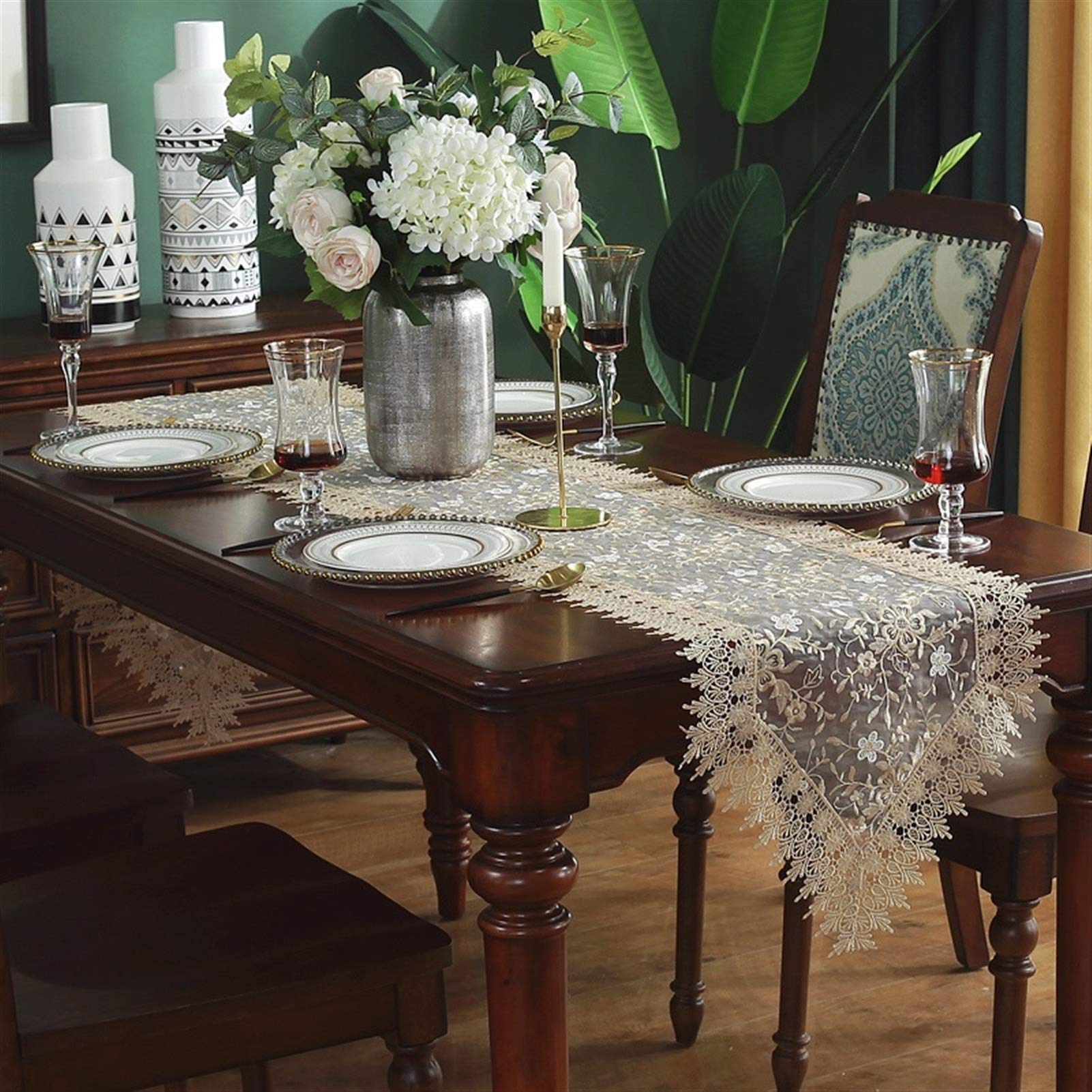 Chemin de table élégant en maille de dentelle à motif floral jacquard et décoré avec bordure en dentelle Parfait pour la décoration de la maison, cadeau de pendaison de crémaillère, décoration de table de fête de mariage, etc. Lavage à la main recommandé avec de l'eau froide ne dépassant pas 30 °C, ne pas utiliser d'eau de Javel, sécher à l'air libre, repasser à basse température pas plus de 110 °C Superbe motif floral en dentelle : rehaussez votre décoration avec ce chemin de table finement brodé qui apporte élégance et charme à toutes les occasions Confectionné en brocart de coton et en résille brodée transparente, ce chemin de table présente de délicats motifs floraux et des bords légèrement ondulés. Le... Chemin De Table Dentelle Chemin De Table En Dentelle Vintage 15Cm X 22M, Blanc Rouleau De Chemin De Table En Dentelle Chemin De Table Jacquard Vintage Chemin de Table en Dentelle | Mariage | Runner Collection