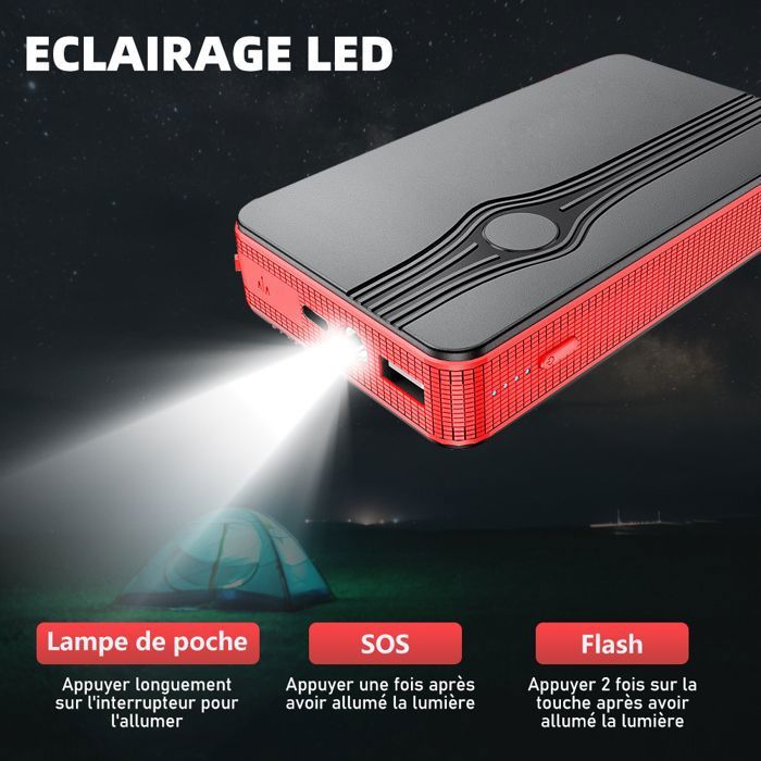 Multifonctionnel Charge Rapide Voiture Démarrage d'urgence Power Démarreur de voiture 20000mAh Démarreur de secours avec batterie 12V Chargeur de démarrage de batterie lithium pour voiture,Trouvez les Détails sur Démarreur-batterie 12 V, démarreur-batterie 12 V de Démarreur de voiture 20000mAh Démarreur de secours avec batterie 12V Chargeur de démarrage de batterie lithium pour voiture - Tianchang Zhiyun Electronic Technology Co., Ltd. Dotée de quatre batteries de grande capacité ultrafines et conçue avec deux ports USB et un port d'entrée/sortie Type-C, elle peut charger simultanément votre smartphone, tablette et autres appareils mobiles ➤➤Fournir de la puissance à la voiture, démarrer la voiture en un éclair, résoudre simplement le dilemme. Multifonction Jump Starter 20000Mah 12V LCD 4 USB Car Jump Starter Booster Chargeur Batterie Power Bank pour La Plupart des Types De Voitures,Un,20000 MA [Léger et compact] : facile à utiliser le démarreur lorsque les batteries de la voiture sont à plat. Aucune chance d'erreurs d'application grâce à la protection contre l'inversion de... Batterie Voiture Momola Puissance De Démarrage D'urgence De La Chargeur Solaire ➤➤Quatre fonctions pratiques: ☞ 1., Démarrez instantanément la voiture, la sécurité et les nécessités d’urgence., ☞ 2., Le chargement intelligent efficace, avec adaptateur et ligne de charge, peut être appliqué à plus de 95% des ordinateurs portables, téléphones portables, tablettes PC, appareils photo et autres équipements électroniques., ☞ 3., 1W lampe de poche LED super brillante, avec mode flash, peut convertir le mode d'urgence SOS., ☞ 4., Protection contre la température, protection contre les courts-circuits, protection contre la tension constante, protection contre le courant constant, protection contre les surcharges, protection contre les décharges, protection de la balance, protection du champ magnétique., ➤➤La description: ✔ 1., couleur: noir et rouge ✔ 2., Matériel: ABS ✔ 3., Capacité: 20000 mAh ✔ 4., Poids Host: ✔ 5., Poids Set: ✔ 6., température de service: -20 -60 ✔ 7., Sortie USB: 5V --- 2A ✔ 8., Sortie Laptop: 12V-16V-19V ✔ 9., Courant Input: 15V / 1A ✔ 10., Mode de la lumière Three: torche de LED, lumières rouges et bleues, SOS, explosion-clignotant de LED ✔ 11., Cycle de vie: 3000 fois ✔ 12., Taille mm: 170 * 80 * 30 ✔ 13., Type de véhicule applicable: Voiture à essence 6., 0 car Voiture à moteur diesel 4., 0 ✔ 14., Courant Starting: 300A ✔ 15., Courant Peak: 600A ➤➤Waterproof et antipoussière;La capacité de la batterie est grande, durable et sûre;Petite taille, mince et facile à transporter;Résistance de la température Low, résistance à hautes températures