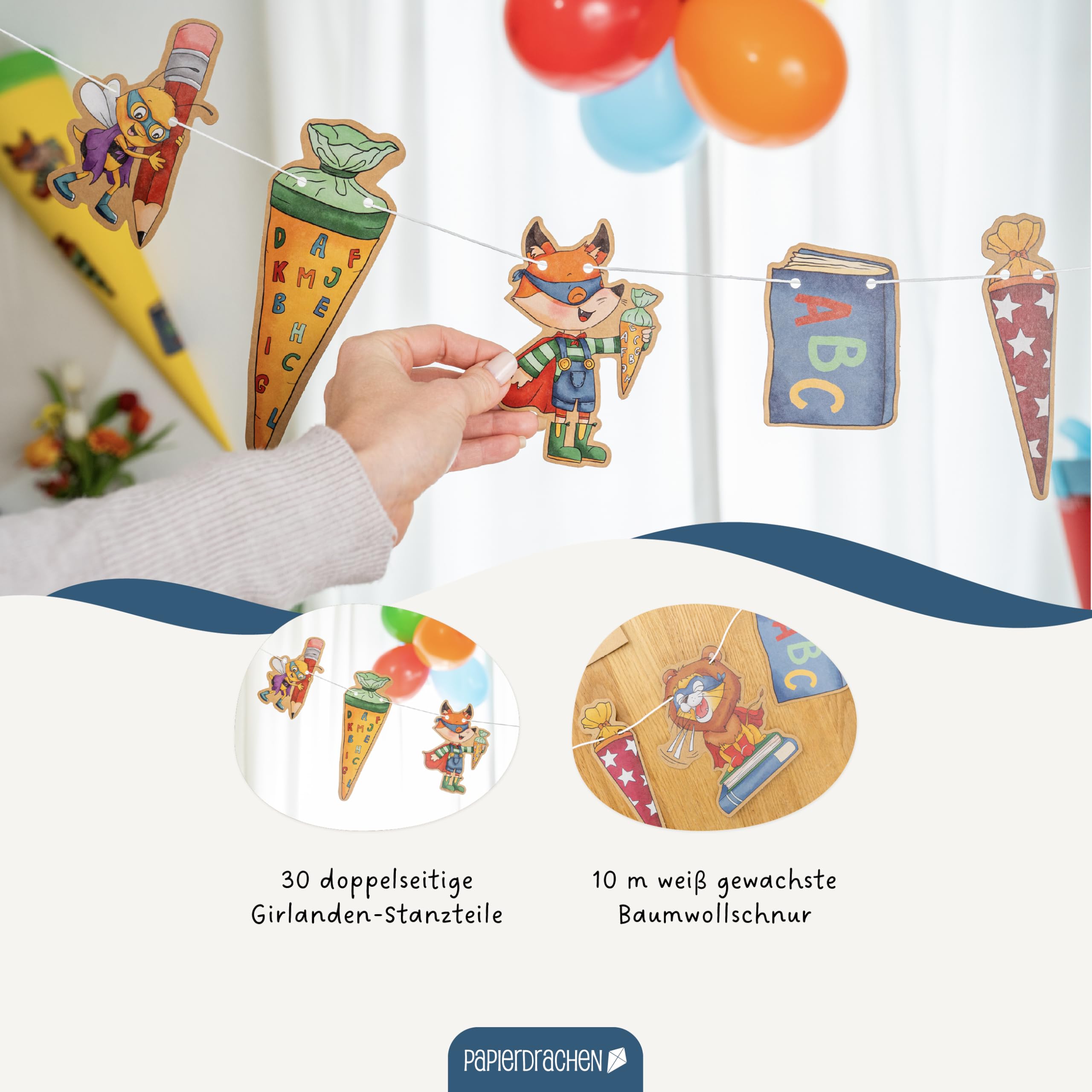 Les motifs mignons tels que les sacs d'école, les super-héros et les livres embellissent chaque fête de rentrée des classes. Chez nous, vous trouverez également de nombreux autres articles pour la rentrée scolaire, par exemple des cahiers, des dossiers postaux, des livres d'amis, des sacs cadeaux, des kits d'écriture avec gomme et stylo, des ensembles de blocs à lettres et des sacs pour frères et sœurs. UTILISATION POLYVALENTE : l'emballage peut être utilisé comme porte-documents et évite ainsi les déchets inutiles Jetez un coup d'œil à notre boutique Description du produit Au revoir à la maternelle, bonjour à l'école. Kit de décoration pour la rentrée scolaire : une guirlande assortie ne doit manquer à aucune fête de rentrée scolaire. Guirlande murale super-héros scolaires en animaux en carton - set 03. Voir le prix... Conçu pour les enfants : des motifs mignons tels que des sacs d'école, des super-héros et des livres embellissent chaque fête de rentrée des classes et peuvent également être utilisés comme étiquettes nominatives Rapide et facile : dans le stress préparatoire, tout doit se passer en douceur. Avertissement De Sûreté Attention : tenir à l'écart des sources d'incendie. Encore plus de choix : connaissez-vous déjà nos cartes d'invitation à la rentrée des classes ? Nous proposons également des cartes de vœux pour la rentrée scolaire et de nombreux accessoires scolaires tels que des gommes, des stylos, des blocs, des cahiers, des dossiers postaux, des blocs-notes, des autocollants scolaires individuels et bien plus encore. Kit de tableau d'affichage super-héros pour la rentrée scolaire Tableau Rentrée Scolaire En Francais Papierdrachen Guirlande De 10 M Pour Rentrée Des Classes – Décoration Pour La Rentrée Scolaire Pour Garçons Et Filles – Inscription En Allemand « Alles Gute Zum Schulanfang Super Ecole Contenu de l'emballage : 10 m de ruban blanc.