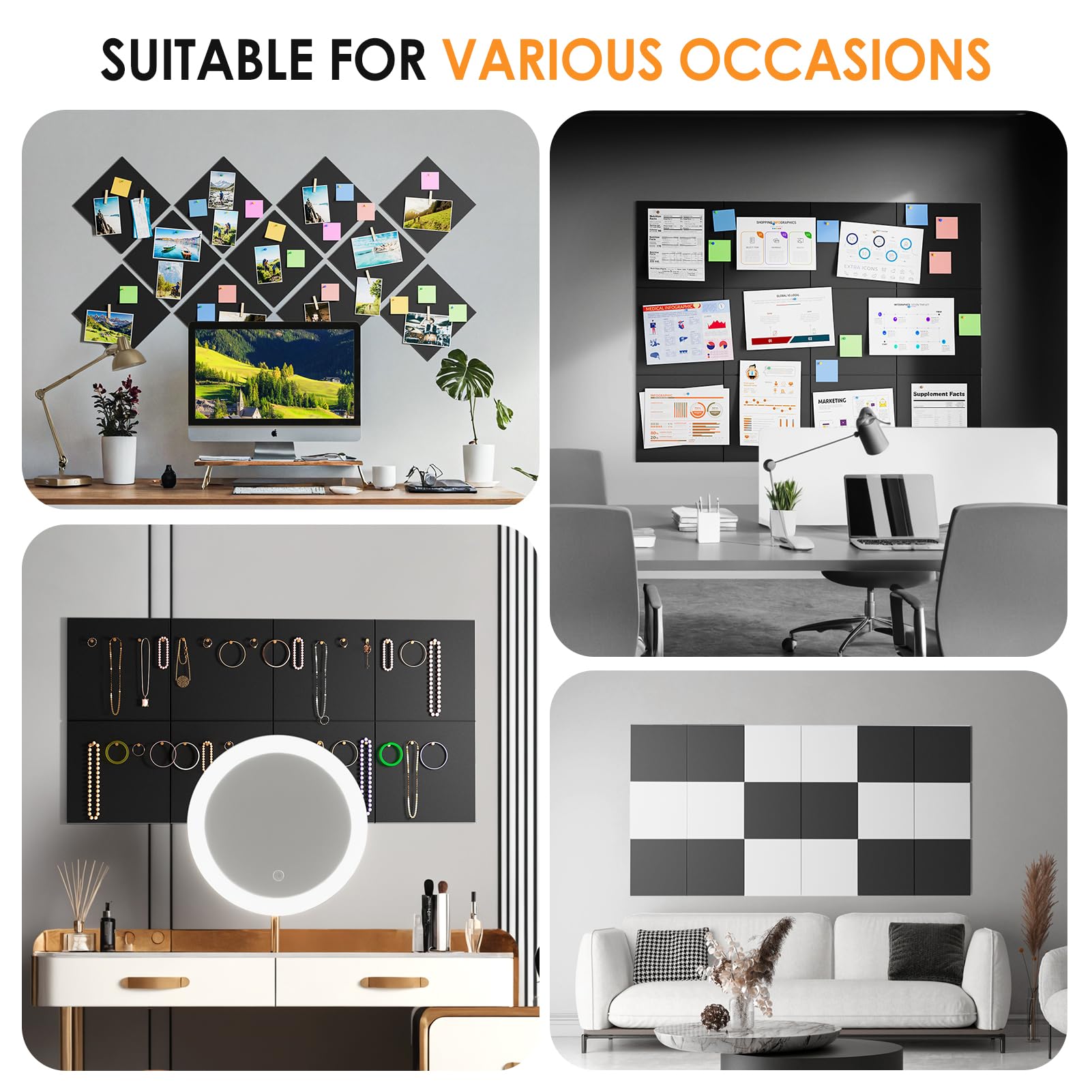 Carreaux muraux en feutre : libérez votre créativité et personnalisez votre espace avec nos planches en feutre polyvalentes. Nos tableaux en liège sont faciles à personnaliser, vous permettant de bricoler différentes tailles de surfaces murales en feutre, parfaits pour n'importe quel espace, que ce soit pour les maisons, les appartements ou les bureaux. Veuillez appliquer les carreaux de feutre sur des surfaces lisses et éviter de les appliquer sur des surfaces pelées, poussiéreuses ou inégales. Panneaux décoratifs en feutre, 12 pièces, carreaux de tableau Relaxdays Pense-bêtes muraux, lot de 6, mémos autocollants en feutre... Nos tableaux en liège sont faciles à personnaliser, vous permettant de bricoler différentes tailles de surfaces murales en feutre, parfaits pour n'importe quel espace, que ce soit pour les maisons, les appartements ou les bureaux., Simplicité à son meilleur. Chaque paquet comprend 12 panneaux d'affichage en feutre haute densité, mesurant 30 x 30 cm, 9 mm d'épaisseur. Respectueux de l'environnement, sans odeur : fabriqué à partir de fibre de polyester de haute qualité, respectueux de l'environnement, notre produit est sûr, inodore, résistant à l'humidité et ne se déforme pas. Pourquoi choisir nos tableaux d'affichage muraux en feutre ? 【Carreaux muraux en feutre】 Respectueux de l'environnement, inodore : Fonctionnalité polyvalente : le tableau en feutre pour mur peut facilement contenir vos photos, notes, messages, mémos, calendriers, menus, rappels, et plus encore, ce qui en fait une toile de fond idéale pour ranger des fichiers, des œuvres d'art, des projets scolaires, des images, des notes, des papiers, des billets, et plus encore. Lot De 6 Grands Carreaux Muraux En Feutre Pour Bureau, 88,9 X 60,9 Cm, Tableau D'affichage En Feutre Pour Mur, Décoration D'intérieur, Panneaux En Nos carreaux en feutre pour mur absorbent également le son, réduisant le bruit et les échos, ce qui les rend adaptés pour les studios, les salles d'enregistrement, les salles de jeux, les cinémas maison, etc., 【Fonctionnalité polyvalente】 Tableau en feutre avec épingles, tableau d'affichage en feutre, carreaux de tableau d'affichage pour décoration murale de bureau, organisateur, tableau d'affichage de messages en feutre 12-Pack,N° de Modèle.:walutz-663,Performance acoustique:NRC 0.9,Application:Salles de conférence, Salles de cinéma à domicile, Espaces de bureau, Studios denregistrement, bureau, cinéma, salle de réunion, ktv,Couleur:plusieurs couleurs,Densité:25 lb/pi³ Tableau en feutre avec épingles, tableau d'affichage en feutre, carreaux de tableau d'affichage pour décoration murale de bureau, organisateur, tableau d'affichage de messages en feutre 12-Pack,Trouvez les Détails sur Panneau d'isolation phonique en feutre, panneau d'insonorisation en feutre de Tableau en feutre avec épingles, tableau d'affichage en feutre, carreaux de tableau d'affichage pour décoration murale de bureau, organisateur, tableau d'affichage de messages en feutre 12-Pack - Hebei Walutz Import and Export Trading Co., Ltd Adhérence sûre, adaptée aux murs. Adhérence sûre, sans danger au mur : le produit est livré avec un ruban adhésif magique intégré à l'arrière, offrant une forte adhérence pour empêcher les tableaux d'affichage de tomber du mur. Le tableau en feutre pour mur peut facilement contenir vos photos, notes, messages, mémos, calendriers, menus, rappels, et plus encore, ce qui en fait une toile de fond idéale pour stocker des fichiers, des œuvres d'art, des projets scolaires, des images, des notes, des papiers, des billets, et plus encore. Améliorez les murs unis avec nos planches en feutre à rayures verticales, ajoutant une touche de beauté subtile et un look élégant et minimaliste. Son design léger rend l'installation un jeu d'enfant, vous permettant de le coller facilement où vous le souhaitez.