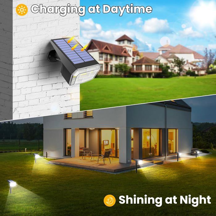 Ces spots solaires sont conçus pour projeter une lueur chaleureuse et ambiante sur les éléments de votre jardin, vos allées et votre aménagement paysager. NACINIC Lot de 4 lampes solaires de jardin, 27 LED 3500 K, pour Orientable pour un Éclairage Directionnel Garantie 2 ans Il protège bien la batterie et les perles de lampe LED. Il se recharge automatiquement pendant la journée et s'allume la nuit. Il suffit de les placer dans un endroit ensoleillé pendant la journée pour charger les batteries intégrées, et elles s'allument automatiquement la nuit, créant une atmosphère accueillante et sécurisée. Adoptez un éclairage durable et profitez de la commodité de ces spots solaires nécessitant peu d'entretien. Installation facile 2 en 1 : le spot solaire de jardin dispose d'une large gamme d'angle de réglage de 120 °, et le panneau solaire peut également être indépendamment d'un angle de réglage de 150 °. Disponibles en niveaux de luminosité, ces spots solaires offrent une solution sans tracas et économique pour améliorer la beauté et la fonctionnalité de votre jardin extérieur. Étanchéité IP65 : les spots solaires d'extérieur sont fabriqués en ABS et PC durables de haute qualité qui peuvent résister à toutes sortes de conditions météorologiques extrêmes telles que la pluie, la neige et les vents forts. Solaire Pour Piscine Spot Solaire D'extérieur T-SUNUS 4 En 1 étanche IP65 Câble De 3 M Spot Led Solaire Spot Solaire Exterieur, 63 LED Angle de Luière 300° Lape Solaire avec... Les lampes solaires d'extérieur peuvent éclairer votre jardin, cour, patio, pelouse, allée, piscine, garage.
