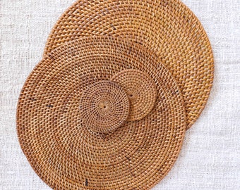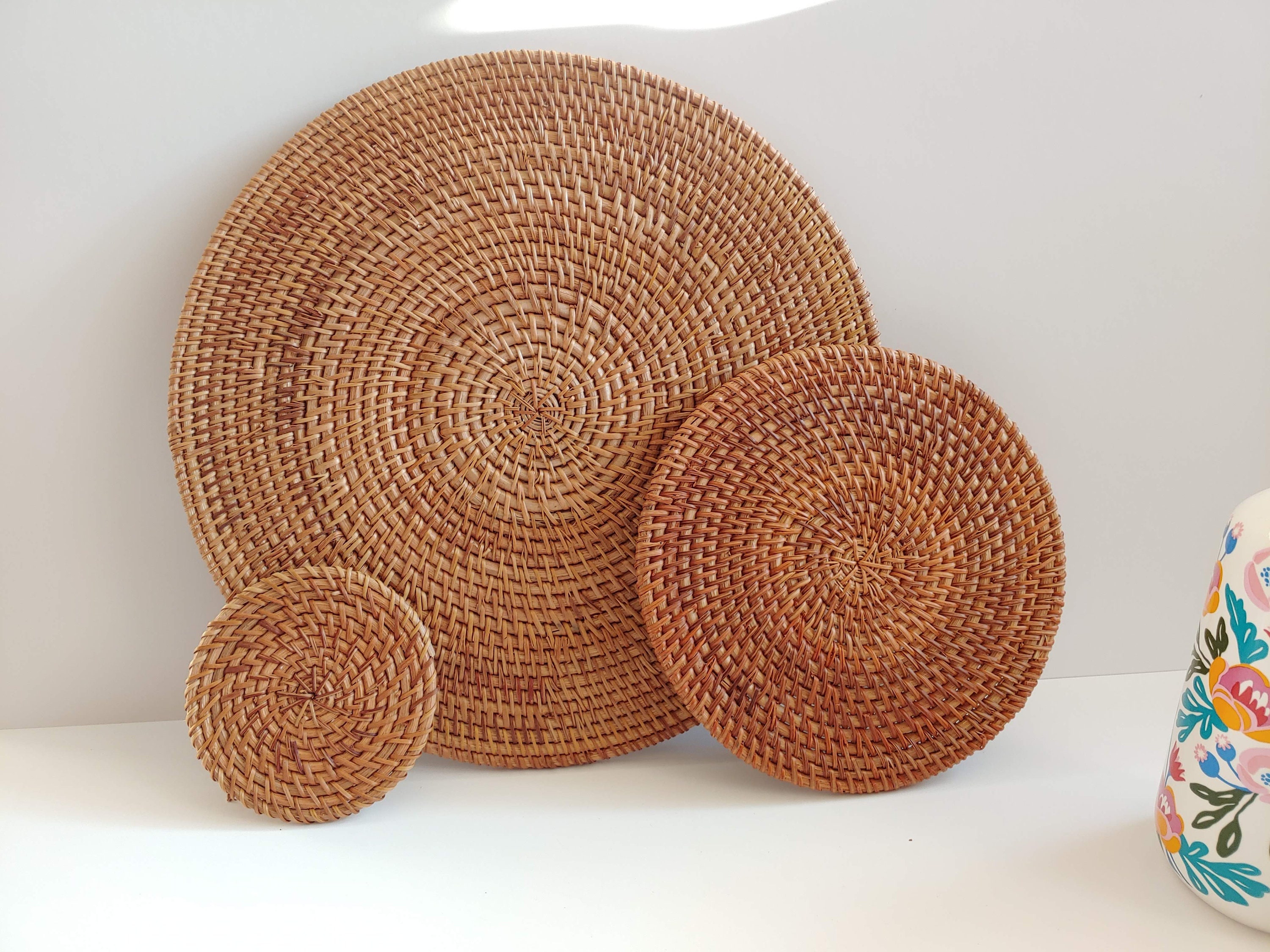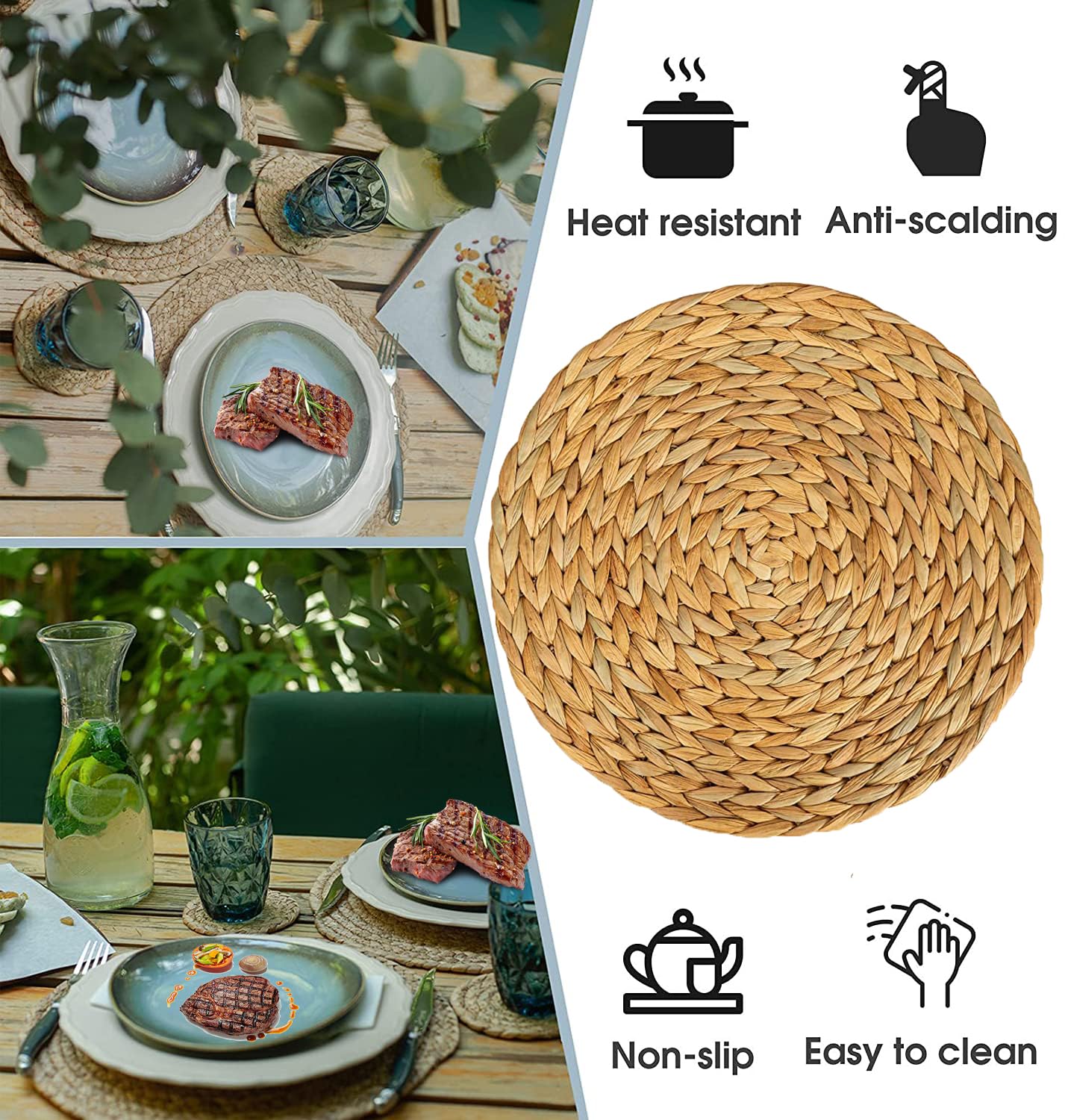 Lot de 4 sets de table ronds tissés de 34 cm en rotin bohème pour assiettes à dîner, sets de table rustiques en osier, sets de table en paille tressée pour table de salle à manger, mariage, ferme, extérieur, Thanksgiving et Noël Essuyez simplement les chargeurs d'assiettes avec un chiffon humide puis rangez-les dans un endroit sec. Set De Table 4 Pièces - Rond Rotin 38cm - Set De Table Naturel Osier Decoration De Table Les sets de table sont tissés à partir de fils de coton avec une texture ferme et sont disponibles en plusieurs styles différents dans le lot de sets de table ronds Nettoyage facile : le design pratique et facile à nettoyer de ces sets de table en jute facilite le nettoyage. Lot De 4 Sets De Table Ronds Tissés En Rotin Bohème De 34 Cm Améliorez votre table de salle à manger avec ces sets de table ronds de 34,3 cm qui s'adaptent parfaitement à la plupart des assiettes. Fonctionnalité polyvalente et flexibilité décorative : ces sets de table tressés antidérapants et résistants à la chaleur protègent vos surfaces tout en servant de support de casserole, de décoration murale et de bases décoratives pour les centres de table. Esthétique naturelle : ces chargeurs en rotin bohème pour assiettes à dîner ajoutent une touche d'élégance et de durabilité, et apportent une ambiance naturelle qui ajoute de la chaleur et de la beauté rustique à n'importe quelle table. SHACOS Set de 6 Napperons de Table Ronds Tissés, 38cm Napperons de...