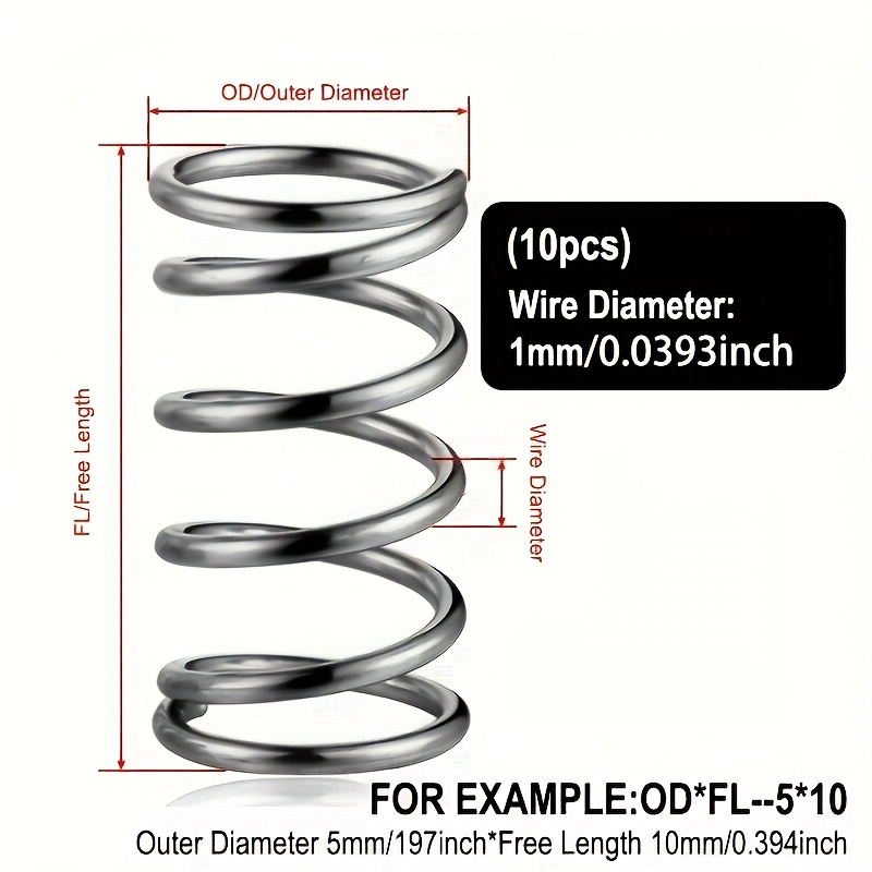 Nom Prodect: Spring de compression en acier à ressortMatériau: Acier à ressortDiamètre du fil: 1mm, diamètre extérieur: 5mm. Le ressort en fil d'acier à ressort de compression est utilisé pour tout, des appareils ménagers à l'équipement moteur, au moteur, etc. Spider pour bobine 49.5mm diamètre extérieur 179mm hauteur 5mm GABRIELLE Aiguille Electricien 50M Tire Fil Electrique 5mm Diamètre... Haute résistance et durabilité: le ressort de compression est en acier à ressort de haute qualité, anti-fatigue, dur. Petit Ressort En Acier Inoxydable, Ressort De Compression, Ressort De Rappel, Ressort De Compression De Type Y, Diamètre Du Fil 1,2 Mm, Diamètre Extérieur 13 Mm, Longueur 10-50 Mm Longueur libre: 5/10/15/20 / 25/30 / 35/40/50 / 50mm DIY Fournitures: Printemps de travail des métauxUtilisation générale du ressort pour les outils d'équipement de jouets, etc. Diamètre du fil: 1mm, diamètre extérieur: 5mm., Longueur libre: 5/10/15/20 / 25/30 / 35/40/50 / 50mm peut également utiliser une variété d'applications ménagères. 10 pièces d'extension Tension Diamètre fil à ressort 0,5mm, 4mm...