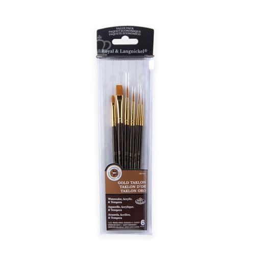 Pinceaux ronds Taklon Or : le set parfait de 6 pièces pour les artistes exigeants Offrant un rapport qualité/prix imbattable, ces pinceaux sont conçus pour transformer chaque projet artistique en une véritable œuvre d’art. Ce set de pinceaux comprend 6 pièces soigneusement sélectionnées pour offrir une polyvalence inégalée. Que ce soit pour remplir de grandes surfaces ou pour réaliser des détails fins, chaque pinceau est conçu pour s'adapter à votre style et à vos techniques Description du produit: Royal & Langnickel - RSET-9161 Royal & Langnickel RSET 9161 Set de pinceaux variété Taklon Or 6 pièces ; Amazon Logo, 8,54 €, Voir l'offre ; Amazon Marketplace Logo, 9,97... Set De 12 Pinceles Royal & Langnickel Taklon Oro Le set de pinceaux Zip N´Close représente notre gamme moyenne en terme de qualité de pinceaux. Ces pinceaux sont d´un excellent rapport qualité/prix et sont idéaux pour ceux dont c´est le passe-temps, les étudiants et même les artistes.