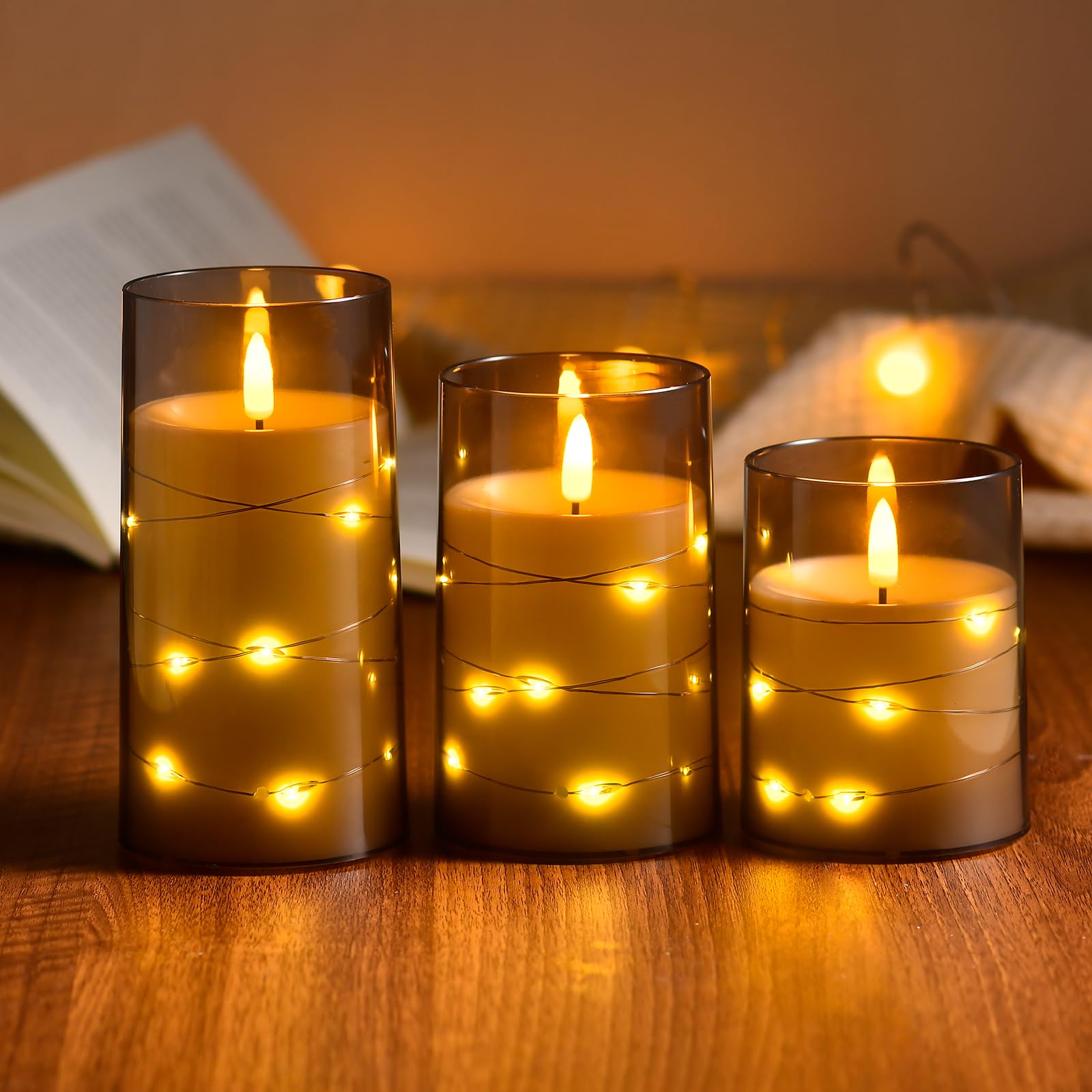 Une bougie colonne de 8 x 15,2 cm. Il est donc recommandé d'utiliser des piles recyclables respectueuses de l'environnement. Contenu : 1 télécommande. Télécommande à 10 touches : vous pouvez choisir le minuteur central de 2/4/6/8 heures, ainsi que la lumière clignotante statique et le niveau de luminosité sélectionnés. Il ne sera jamais sali ; aucun ruban à base de cire (cire) ne sera coulé, et aucune fumée ne sera générée. Montrant une atmosphère classique et noble. Il s'agit d'un effet esthétique unique qui combine l'apparence d'une lampe féérique avec la beauté classique d'une vraie bougie. Contenu : 3 bougies LED sans flamme (taille : 8 cm de diamètre x 10,2 cm de hauteur, 8 cm de diamètre x 12,7 cm de hauteur, 8 cm de diamètre x 15,2 cm de hauteur), 1 télécommande, manuel d'utilisation (français non garanti)., Piles non incluses. Bougie sans flamme avec technologie LED intégrée : Chaque bougie est entourée d'une lumière vive et délicate. Une copie du manuel (français non garanti). Fonctionne avec 2 piles AA avancées. Bougies à LED Lot de 5 Bougies LED décoratives Bougie sans Flamme de Caractéristiques : Flammes dansantes. Noel Sans Flamme Avec Guirlande Lumineuse Intégrée Bougies Led Dekofun 31V 6W Clignoteur pour Guirlande, Prise Clignotante pour... Chaque bougie nécessite 2 piles AA (non fournies). Guirlande lumineuse LED intégrée : chaque bougie est enveloppée dans une lampe en fil de fer argenté, offrant un petit spot lumineux et une apparence charmante. Guirlande lumineuse intégrée. Télécommande puissante à 10 touches : Appuyez deux fois sur le bouton NO pour contrôler indépendamment la guirlande Starlight. Une bougie pilier de 8 x 12,7 cm.