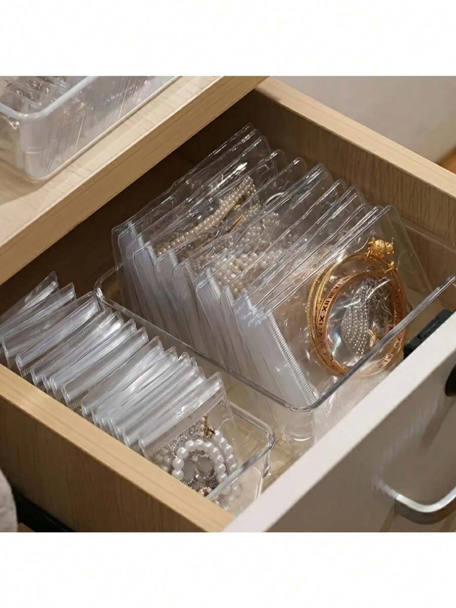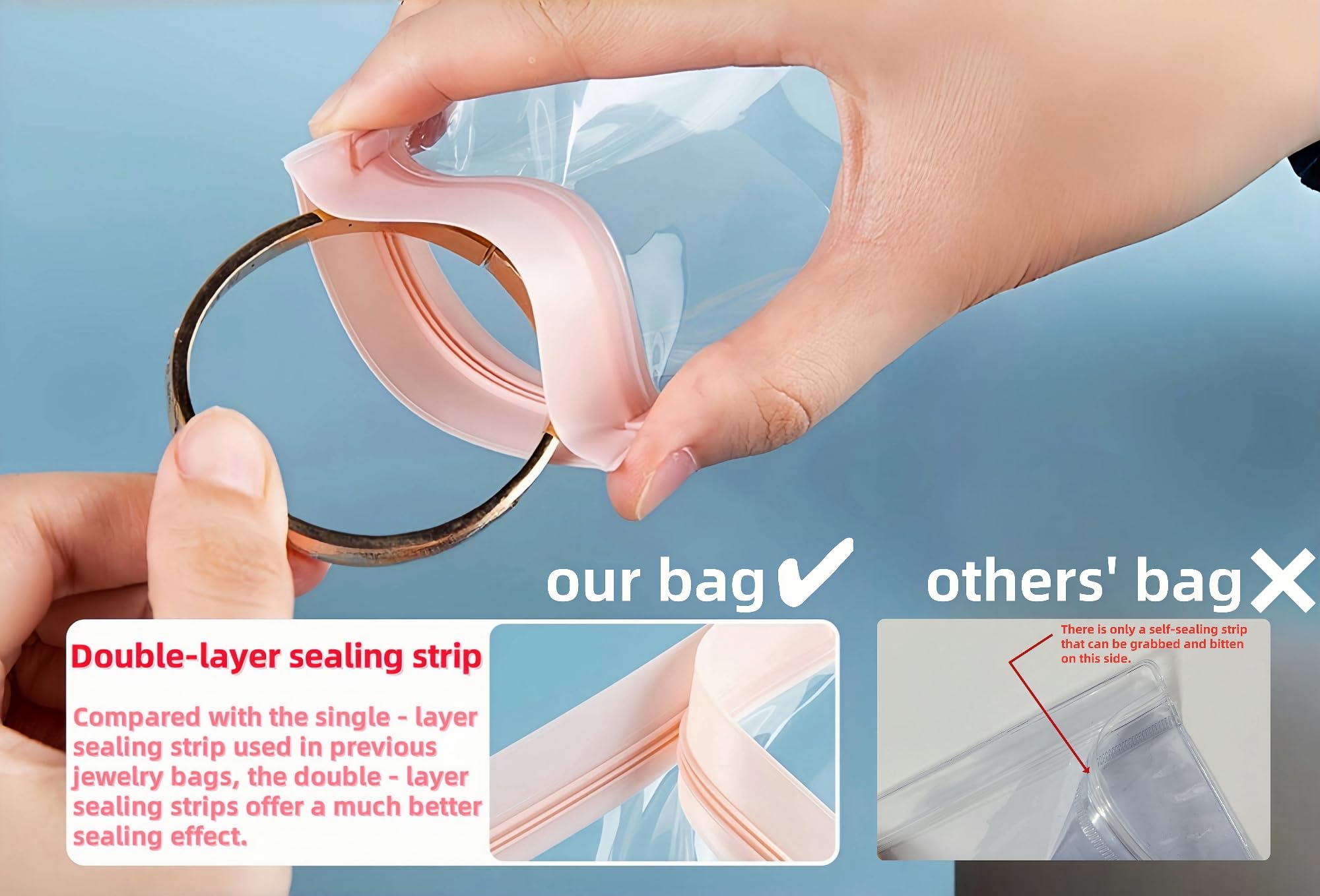 Nom du produit : 50 sacs à bijoux anti-ternissement., Couleur : rose. Ils sont assez petits pour tenir dans votre sac à main, bagages ou tiroirs, ce qui les rend parfaits pour les voyages. Plus besoin de chercher dans les sacs opaques Livre de rangement de bijoux transparent, 50 pièces de sacs à bijoux... Pendentifs transparents en œil de chat bleu blanc pour la fabrication... ElevateTech Lot De 80 Sacs à Bijoux De Voyage En PVC Transparent Matériau : PVC transparent. Lot de 50 sacs en plastique transparent refermables pour bijoux Sûr et résistant à l'oxydation : le matériau en PVC robuste et le design hermétique protègent vos bijoux de la poussière, de l'humidité et de l'oxydation, assurant que vos pièces restent brillantes et non ternes. Taille compacte et pratique : chaque sac à bijoux mesure 8,1 x 5,8 cm, parfait pour ranger bagues, boucles d'oreilles et colliers. Lot de 50 sacs polyvalents : notre lot comprend 50 sacs à bijoux, offrant beaucoup d'options de rangement pour toute votre collection.