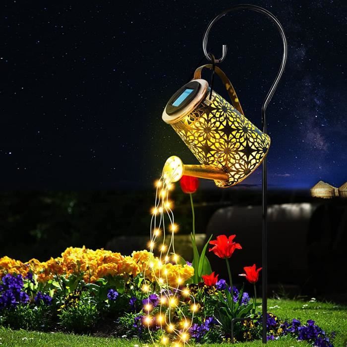 Poids du colis : 470 g. La lampe de jardin extérieure dispose de quatre leviers pour une installation facile. FACILE À INSTALLER : Les décorations solaires extérieures peuvent être installées facilement. Tout d’abord, fixez le piquet de jardin enterré à la décoration de jardin solaire et insérez-le dans le sol ; puis accrochez l'arrosoir solaire à la fée du jardinExcellent cadeau, 2 modes d'utilisation : nous proposons 2 modes pour utiliser cette lampe solaire suspendue d'extérieur... À la tombée de la nuit, la lumière du jardin s'allume automatiquement. Caractéristiques : Matériau : fer. Contenu : 1 kit d'éclairage pour bouteille d'eau. La lampe arrosoir solaire avec des motifs métalliques creux et une guirlande lumineuse brille comme des étoiles, si belle que vous pouvez profiter d'une sensation onirique dans le jardin, la terrasse, la pelouse et la cour à la tombée de la nuit. 36 LED intégrées, haute luminosité et faible consommation d'énergie. Temps de charge : 8 à 10 heures., Étanchéité : IP55., Dimensions de l'emballage : 230 x 150 x 115 mm. Arrosoir solaire extérieur avec lumières LED, étanche et autonome, ins... L'arrosoir solaire avec des motifs métalliques creux et une guirlande lumineuse brille comme des étoiles, si belle que vous pouvez profiter d'une sensation onirique dans le jardin, sur la terrasse, sur la pelouse et dans la cour la nuit. Arrosoir Led Solaire Arrosoir Solaire Avec Lumières En Cascade - Abat-jour De Jardin Solaire Arrosoir Solaire Exterieur Jardin Durée de fonctionnement : 6 à 8 heures. Crée une atmosphère chaleureuse, joyeuse et romantique. Il n'y a pas besoin d'allumer manuellement les lumières solaires en forme d'étoile, ce qui permet d'économiser du temps. Source de lumière : 36 LED. Arrosoir solaire avec guirlande luineuse - Lapes solaires LED avec