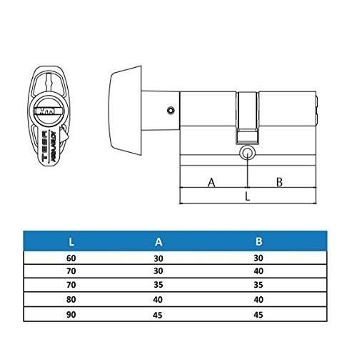 dimensions de l'emballage de l'article : 10x5x3cm , Fabriqué en Espagne , Couleur : Laitonnage , matérielle : Messing Cilindro eCLIQ para depósito de chaves ASSA ABLOY Le cylindre TE5 est un cylindre monobloc de type europrofil, conçu avec un système de 5 goupilles actives en bronze extra dur, offrant une protection moyenne contre le crochetage Cylindre Vachette Tesa Assa Abloy Cylindre De Sécurité, 52003010N Barillet De Porte 30x30 Tesa Assa Abloy 50304040L Cilindro de seguridad estandar de leva larga...