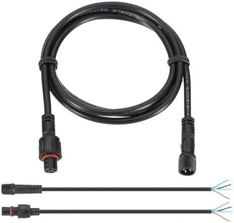 Le connecteur d'extension imperméable à l'eau est largement adapté à la connexion d'application extérieure de divers produits LED. Application: Le connecteur d'extension étanche à l'eau est largement adapté à la connexion d'applications extérieures de divers produits LED. Spécification: Couleur: Noir; Matériau: Plastique, cuivre; Longueur totale: 1m / 3., 28ft; Jauge de fil: 0., 3mm² /22AWG; Courant nominal: 2A/chaque fil; Tension nominale: 1-300V , Avantage: 1., le fil et la fiche sont intégrés par moulage par injection, avec une bague en caoutchouc étanche et un écrou, qui est étanche en serrant après l'amarrage., 2., Matière plastique RVV et cuivre, résistance à la traction et au pliant, surface extérieure flexible, solide et durable, pas facile à chauffer. Instruction: Une extrémité du connecteur est un connecteur mâle et l'autre extrémité est un connecteur femelle. Connectez l'extrémité mâle du connecteur d'origine à l'extrémité femelle du produit (l'extrémité femelle du connecteur d'origine est connectée à l'extrémité mâle du produit CESFONJER Imperméable à l'eau Connecteur, Électrique Prise Mâle et... Fiche Male Pour Guirlande 3.28Ft 2 Broche Extension Câble Fil, 2Pcs 22 AWG Imperméable Connecteur Led 2 Broches Instruction Une extrémité du connecteur est un connecteur mâle et l'autre extrémité est un connecteur femelle. EBIKE AFFICHAGE CONNECTEUR 2/3 /4/5/6 Broche Câble Haut Qualité Il est employé dans les domaines de l'éclairage, de l'électricité, des appareils ménagers, des équipements électroniques, de la détection de la température, etc. Instruction: Une extrémité du connecteur est un connecteur mâle et l'autre extrémité est un connecteur femelle. REMARQUE: Assurez-vous que le connecteur peut correspondre à votre connecteur d'origine, merci de vérifier la dimension avant l'achat.