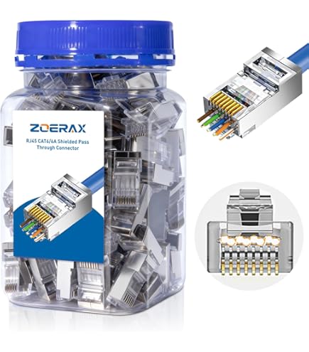 Cela réduit la distance entre les torsions et les contacts du fil et améliore les performances. Generic 50 Pcs Connecteur RJ45 métal ( Plug / Pleug RJ45 ) Cat 5 / 6 Fiches RJ45 pour Câble Réseau Cat6 Lot de 50 RJ45 Connecteur avec... Disponible en UTP et FTP S'adapte à tous les outils à sertir RJ45., Design pratique pour un sertissage facile. Fini le gaspillage de sertissages Plus fiable, plus performanceConnexions 8P8C (8 ports pour 8 câbles avec 8 connecteurs). Ne convient pas pour les solides. L'extrémité RJ45 vous permet de passer à travers la garniture et le sertissage du noyau. Conçu pour les câbles toronnés. Convient pour les conducteurs de maximum 24 AWG. PAQUET DE 100 CONNECTEURS RJ45 CAT6 Connecteur Rj45 Pass Par Blindé RJ45 Fiches Crimps Pour Cat5e/Cat6 Ethernet Câble [100 Paquet De] [Shielded (FTP) 100 Pack Fiche Rj45 Cat 6 UTP Pass Through RJ45 Conçues pour les câbles réseau non blindés, les extrémités de passage ont un boîtier en plastique transparent avec une extrémité traversante pour vous permettre de passer facilement les noyaux à travers l'extrémité de la prise RJ45 et du sertissage.