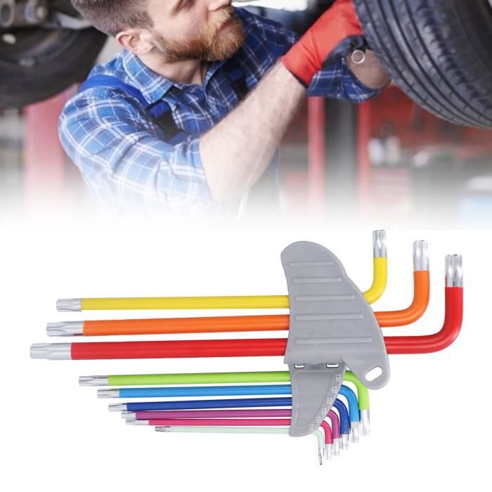Clé en L pour un couple maximal. La poignée ergonomique évite la fatigue des mains lors de l'utilisation. APPLICATION - Que vous l'utilisiez le jour de la piste ou à la maison dans votre garage pour travailler sur vos motos, vtt ou voitures, cette clé hexagonale vous protège confortablement! JET Equipment 775109 Jeu de clés hexagonales avec manche en T, 10 mcx, Impérial/Torx Description du produitInformations de base:Matériau: acier CR-VClé hexagonale: tête sphériqueLes tailles comprennent: 1,5 mm, 2 mm, 2,5 mm, 3 mm, 4 mm, 5 mm, 6 mm, 8 mm,10mmCaractéristiques:Construit en acier premium. En même temps, la conception de la clé en L vous permet d'obtenir le couple maximal dont vous avez besoin quand vous en avez besoin. Matière: Acier au chrome vanadium, trempées, nickelées avec codage couleur. utilisez cette clé hexagonale le jour de la piste ou à la maison dans votre garage pour travailler sur vos motos, vos voitures et bien plus encore! APPLICATIONS COMMUNESCette clé hexagonale est conçue dans un souci de qualité et de polyvalence! Grâce à la rotule, vous bénéficiez d'une plus grande liberté de mouvement de 25 degrés, ce qui facilite le travail sous des angles difficiles. NOTRE SERVICE - Si vous rencontrez un problème, n'hésitez pas à nous contacter par e-mail à tout moment, nous sommes prêts et heureux de vous aider et de résoudre le problème. Clé Hexagonale Longue Jeu De Clés Coudées 90° à Bouts Sphériques Série Longue Color" AMF® N Jeu Clé Allen Jeu de 9 clés mâles 6 pans, tête sphérique vis abimées · Selon DIN / ISO 2936 · Tête spécifique pour empreintes de vis abimées sur la partie courte · Tête... Idéal pour travailler dans des espaces restreints et restreints.