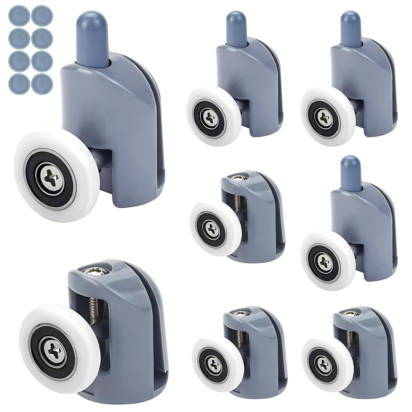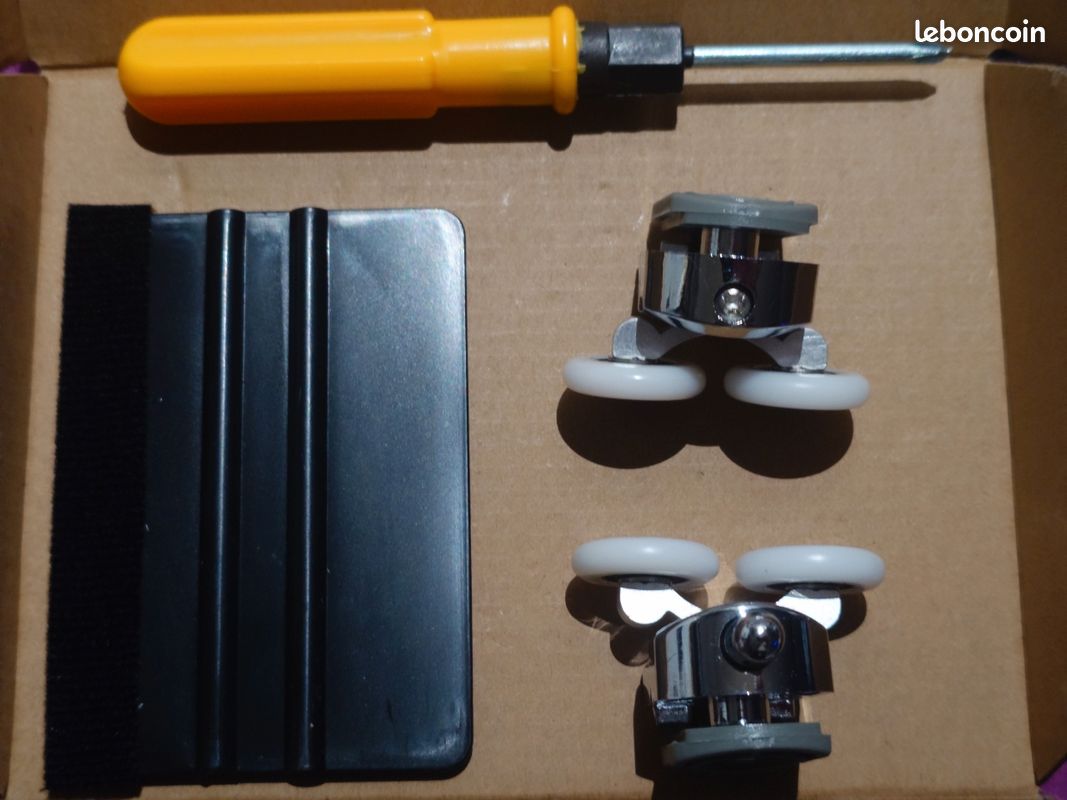Spécifications Nom du produit : Roulette porte coulissante douche 25mm Quantité : 8 Pièces Matière : Alliage d'aluminium ; ABS Couleur : Argent Taille : 25 mm Numéro de série : SXMY-7 Caractéristiques 1., La roulette porte cabine de douche est livrée avec des pare-chocs, des vis de montage et un tournevis pour simplifier l'installation et l'entretien. 🎀[Largement utilisé] La performance de haute qualité de la roulette cabine de douche double assure une performance durable et un fonctionnement en douceur de la porte de douche, adaptée à la plupart des douches, hammams, cabines de massage, etc, c'est une bonne aide pour les portes coulissantes. Nornward 4 Pièces Roulettes Pour Porte De Douche, Roulette Porte Roulettes porte de douche 🎀[Taille d'installation] La taille exacte du rouleau de cette roulette double porte de douche (25 mm de diamètre, 5 mm d'épaisseur) convient aux portes en verre d'une épaisseur de 4 à 6 mm, compatible avec les trous de montage en verre d'un diamètre de 12 à 14 mm. Roulette Pour Baie Vitrée Coulissante Alu 8 Pièces Roulettes Douche 25mm, Roulette Porte Coulissante Douche Roulement Pour Porte De Douche 96425243 Bloque Porte Coulissante Un bloc anti-choc est installé sur le rail de guidage pour bloquer la roue et éviter les collisions avec le verre. 🎀[Liste d'emballage] Vous recevrez 8 roulettes double porte coulissante douche (4 poulies supérieures et 4 poulies inférieures) avec des coussinets, des vis, des raclettes de nettoyage et des tournevis pour répondre à vos besoins quotidiens. Paquet comprend 8 * Roulettes porte coulissante cabine de douche galets 1 * Grattoir ; tournevis 8 * Bloc anti-chocs ; vis Attention 1., 1., Le rouleau de la roulette de douche coulissante a un diamètre de 25 mm et une épaisseur de 5 mm, veuillez vérifier la taille avant l'achat., 2., Veuillez accepter une petite erreur de taille due à la mesure manuelle. Lot de 8 Roulettes pour Porte de Douche - Roulettes Cabine de Douche en...