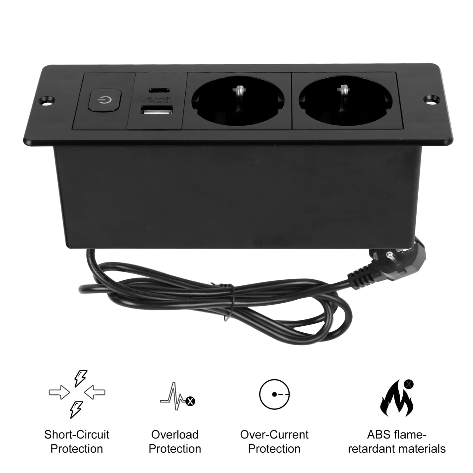 Ignifuge Prise Multiple avec USB est fabriquée en matériau ignifuge ABS de haute qualité, stable, robuste, sûre et résistante aux températures élevées. Robuste et Durable Le câble d'extension 2M n'est pas facile à déformer, durable et plus sûr que les autres câbles d'alimentation. Dimensions extérieures 160 x 60 x 45 mm (L x L x H), profondeur d'installation avec raccordement par câble : 43 mm - dimensions de découpe : 178 x 58 x 43 mm (L x L x H). Multiprise De Bureau Encastrable Et Rétractable Avec 3 Prises 230V Et 2 X Usb Ref Zx8187 6 Tension de fonctionnement: 13 A, 100-240 V 【Prise cachée avec câble de 2 m】Fini les adaptateurs encombrants et les câbles emmêlés sur le bureau. Multiprise USB Encastrable Plan de Travail avec 2 Prises 2USB... Simple et caché dans un coin discret. Prise Multiple prend moins de place sur le bureau. Le câble d'extension 2M n'est pas facile à déformer, durable et plus sûr que les autres câbles d'alimentation. 【Large gamme d'applications】Prise Multiple avec USB C est largement utilisée dans les garages, les chambres, les cuisines, les salons et les sous-sols, offrant suffisamment de commodité pour votre vie. Multiprise plan de travail : la sélection produits Leroy Merlin de ce samedi au meilleur prix ! Retrouvez ci-après nos 131 offres, marques, références et promotions en stock prêtes à être livrées rapidement dans nos magasins les plus proches de chez vous Multiprise Plate Prise Encastrée Sur Le Dessus De Table Avec 2 USB Et 2 Type-C, Multiprise Encastrable à 3 Prises Avec Câble De 2 M, Multiprise Pour Meubles Ou Plans De Travail (blanc Prise Plan De Travail Large gamme d'applications Prise Multiple avec USB C est largement utilisée dans les garages, les chambres, les cuisines, les salons et les sous-sols, offrant suffisamment de commodité pour votre vie.