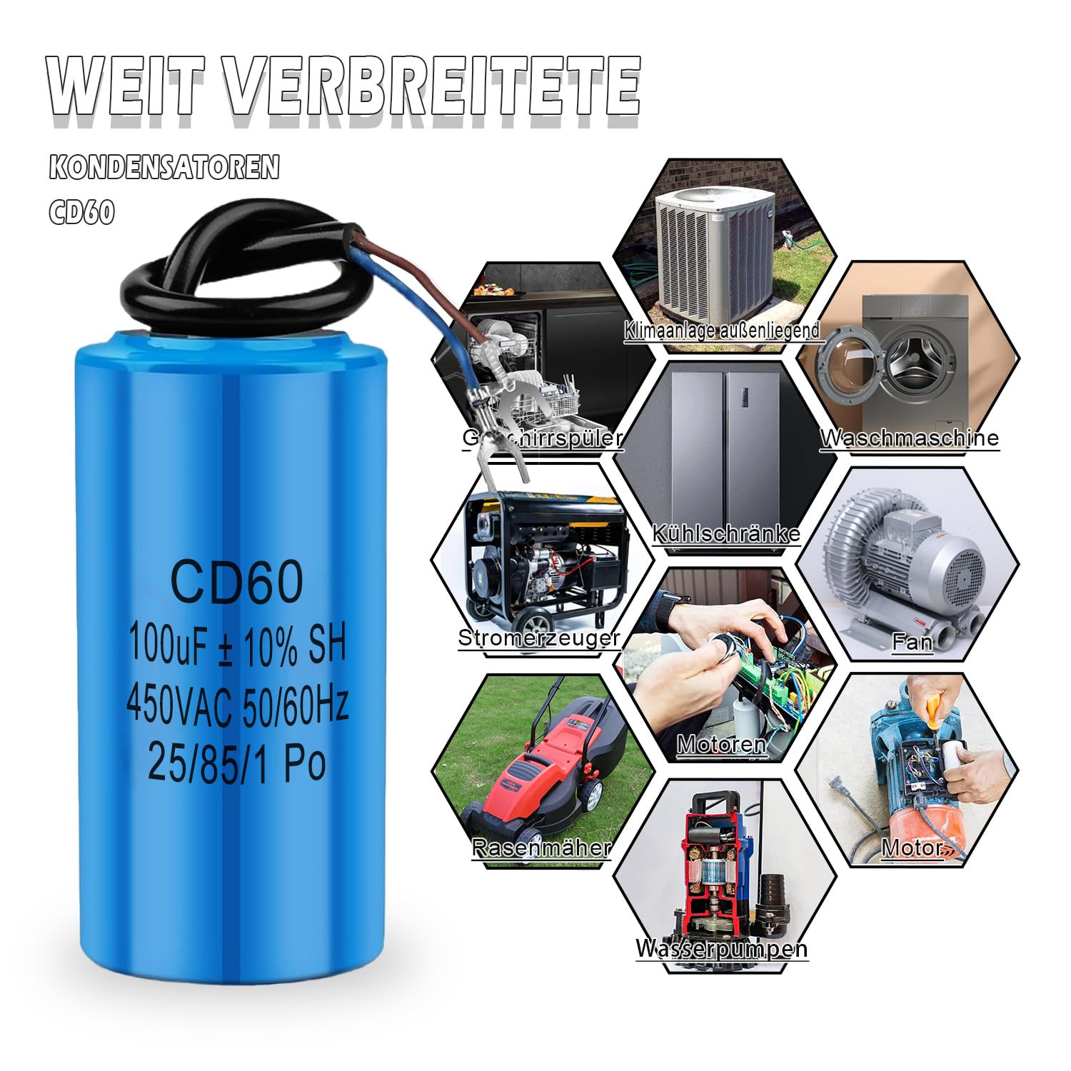 Description générale Le condensateur de démarrage pour moteur de 6 µF et 450 V est conçu pour améliorer le démarrage des moteurs électriques. Il est équipé d'une tête M8 et de fils d'alimentation de 20 cm, facilitant ainsi son installation et son utilisation dans divers appareils. Spécifications techniques Capacité : 6 µF Tension : 450 VAC Taille : 34 x 60 mm Longueur des fils... Condensateur de démarrage 6 microfarad 450 volts Condensateur 1.0UF 450VCA CBB60 40-85/21 50 60Hz condensateurs du moteur,Trouvez les Détails sur Cbb61 condensateur, le plafond d'exécuter de Condensateur 1.0UF 450VCA CBB60 40-85/21 50 60Hz condensateurs du moteur - Zhejiang Jiamei Electronic Co., Ltd Condensateur de Démarrage 400-450V – Le SAV : ventes et commande de... Condensateur Cbb65 Condensateur De Démarrage De Ventilateur CBB61 450V 1uF 1.2uF Cbb60 Condensateur Condensateur 1.0UF 450VCA CBB60 40-85/21 50 60Hz condensateurs du moteur - Chine Cbb61 condensateur, le plafond d'exécuter