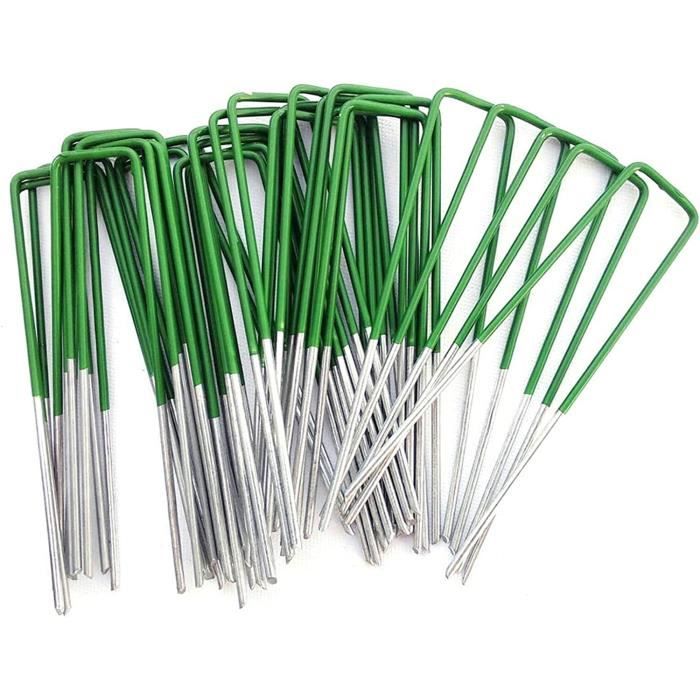 Tissu paysager : maintenez le tissu du paysage et les barrières contre les mauvaises herbes. Ils sont parfaits pour ce travail. Les agrafes de jardin peuvent être utilisées pendant une longue période. Large application : utilisez les agrafes de jardin galvanisées pour ancrer le tissu de barrière contre les mauvaises herbes, les tuyaux d'irrigation goutte à goutte et le gazon artificiel. Couverture de sol et tubulure - Fixez le revêtement du sol ou le tube d'irrigation. Contenu : 10 piquets de jardin galvanisés en forme de U. Fixation - Clous en U en Forme U pour Gazon Au Carbone pour Fixer Les Tissus Mauvaises Herbes... Assez solide pour être inséré dans le sol avec une largeur réglable. Matériau : nos piquets en tissu sont fabriqués en acier galvanisé durable antirouille. Le long de l'extérieur du tissu, je serais entre 12,7 et 25,4 cm. Facile à utiliser : agrafes à gazon faciles à utiliser avec des bords inclinés tranchants qui facilitent la pénétration dans une grande variété de surfaces, y compris la terre, le tissu paysager, les jardins et les trous en bois. Fixation - Clous en U en Forme U pour Gazon Au Carbone pour Fixer Les Tissus Mauvaises Herbes Piquet Acier Galvanizado GROWNEER Lot De 100 Piquets De Jardin En Acier Galvanisé De Calibre 11 15,2 C Pour Sécuriser Piquet De Fixation Acier Galvanisé Bien que je n'ai pas épinglé le tissu, j'ai une idée de comment ils fonctionneraient.