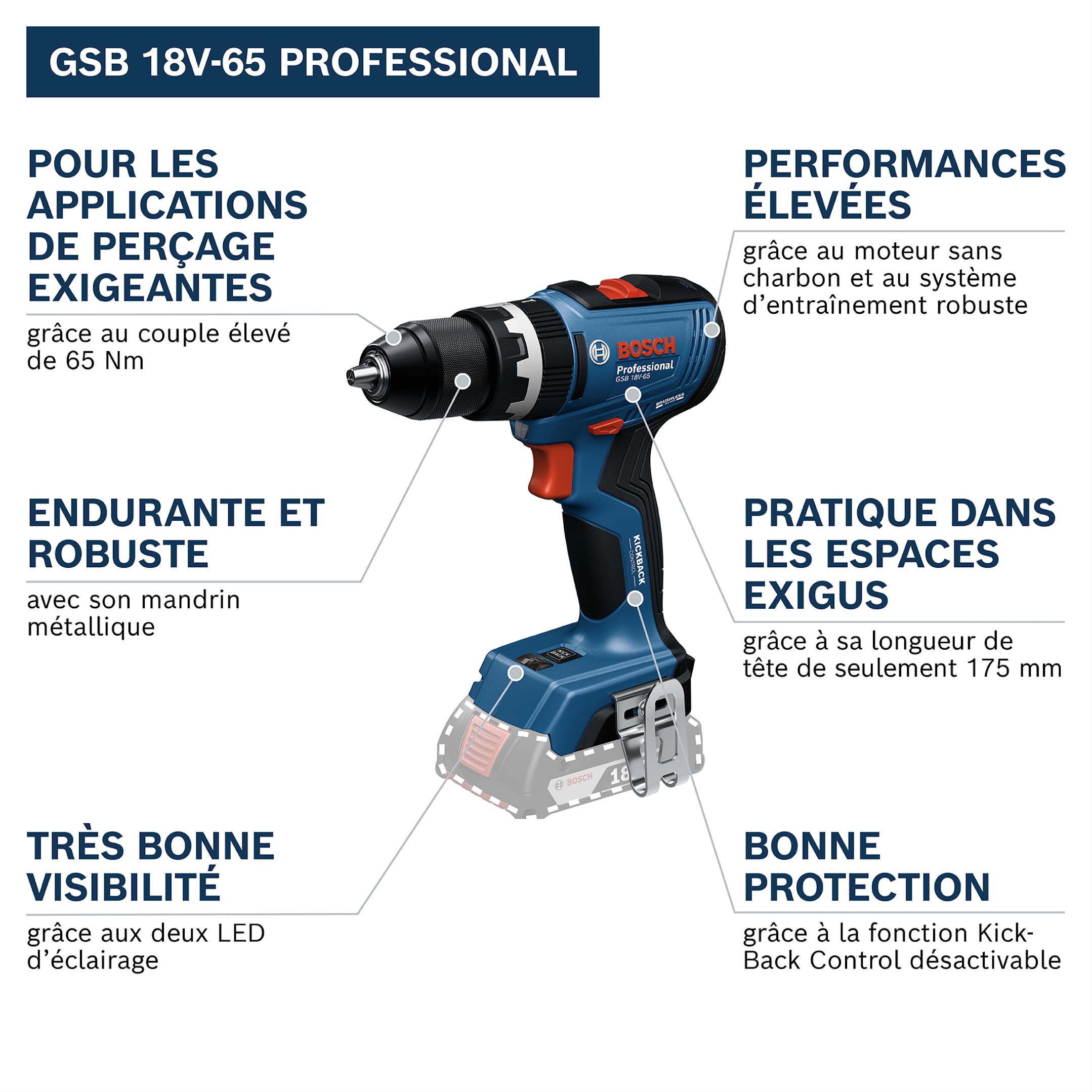 Original Bosch Professional 0615A5002Y Bosch Professional GSB 18V-150 C 0615A5002Y Perceuse-visseuse à percussion sans fil 18V 8Ah Li-Ion Brushless, encre durable et robuste Combinés avec une batterie Procore, les outils Biturbo délivrent leur pleine puissance et permettent d'atteindre des performances jusque-là inégalées. Dimensions (L x l x h) : 205 x 73 x 220 mm Perceuse-visseuse sans fil Bosch GSR 18V-150 C Professional 18 V 150 Nm... Ici, vous bénéficiez d'un couple de vissage en force de 150 Nm, assez pour des vis de plus de 12 mm. La GSB 18V-150 C Professional de Bosch est équipée des éléments suivants La détection électronique précise des angles et le KickBack Control commutable permettent un contrôle unique à chaque étape Bosch GSB 18V-150 C Professional au meilleur prix | Décembre 2025 De plus, les batteries Procore permettent de délivrer plus de puissance à la machine. Fiable et robuste grâce au mandrin métallique et à l'entraînement en métal Perceuse Visseuse Sans Fil Bosch Bosch Professional Bosch GSR 18V-150 C Professional Perceuse-visseuse Sans Fil 18 V 150 Nm Biturbo B 21786019 Perceuse Bosch Sans Fil Compatible avec toutes les batteries et tous les chargeurs 18 V de Bosch Professional Fréquence de frappe maximale : 30 000 cps/min Combinées à la technologie Biturbo, elles permettent d'atteindre des niveaux de puissance équivalent au filaire, jamais égalées auparavant sur des machine sans-fil.