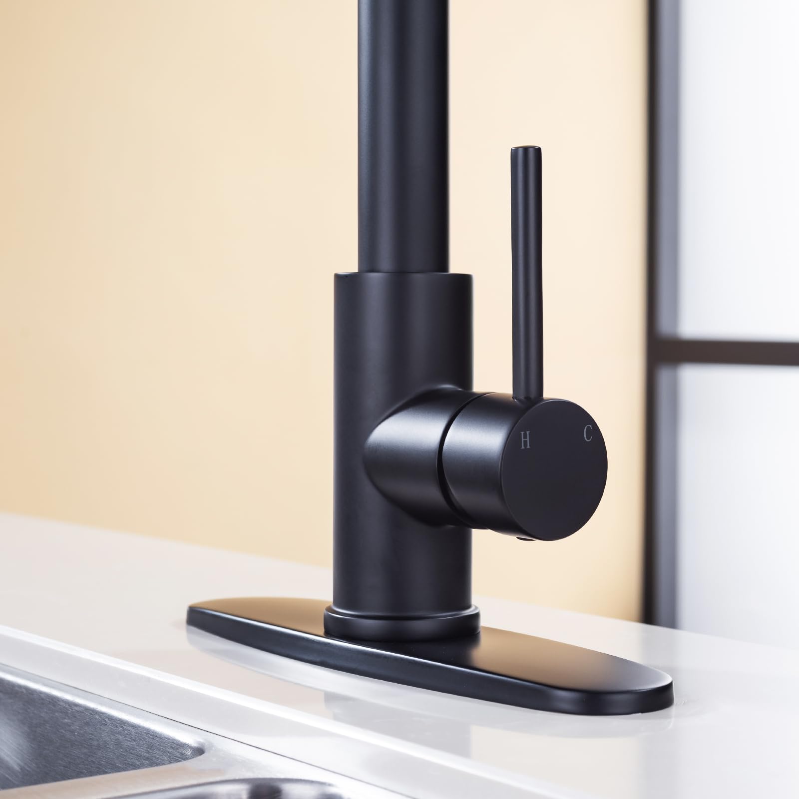 Ce robinet polyvalent combine style et praticité, vous permettant de basculer sans effort entre un jet régulier et un jet puissant en un seul geste. GOTOTOP tête de pulvérisateur extractible pour robinet Robinet mitigeur Avec son fonctionnement convivial et son esthétique moderne, ce robinet est un incontournable pour tout projet de rénovation ou de rénovation de cuisine. GIFTQOOL Robinets D'évier De Cuisine Noir Mat Avec Pulvérisateur à Poignée Unique En Acier Inoxydable, Robinet Commercial à 1 Trou, Robinets Modernes Pour Camping-car Fonctionnement fluide : le pulvérisateur s'étend et se rétracte en douceur, assurant une facilité d'utilisation. Paramètres du produit : Couleur: or Matériel: acier inoxydable Taille : comme indiqué sur l'image Liste de colisage : 1 pièce * robinet tuyau d'entrée d'eau * 2 pièces fonctionnalité: [Matériau] --- Le corps du robinet est en acier inoxydable 304 et le noyau interne est en laiton massif. La surface chromée est lisse. [Pivot] --- Robinet de cuisine pivotant à 360°, le bec à arc... Débit réglable : personnalisez votre débit d'eau avec les paramètres de pulvérisation réglables. Design polyvalent : ce robinet de cuisine dispose d'un pulvérisateur rétractable pour un nettoyage sans effort et une utilisation multifonctionnelle. Le bec verseur à arc haut offre suffisamment d'espace pour les grandes casseroles et poêles, tandis que le pulvérisateur rétractable étend votre portée, ce qui facilite le nettoyage de chaque coin de votre évier.