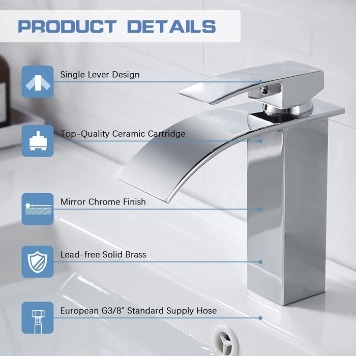 SHAMANDA Robinet de salle de bain à cascade, robinets de salle de bain... Veuillez noter les dimensions du bec cascade lors de l'achat avant. (En raison du bec verseur en cascade trop grand, veuillez vérifier avant de vérifier les dimensions lors de l'achat Mitigeur Cascade Robinet De Lavabo à Trou Unique, Or Noir Mat Robinet D 039 Eau Chaude Et Froide En 799121 Robinet Cascade Wathels Robinet D'évier De Salle De Bain Large Cascade 2 Poignées 3 Trous Noir Mat Robinet Mitigeur De Lavabo Avec Double Boutons Carrés, Laiton Massif Robinet Cascade Extérieur Vous pouvez l'installer vous-même sans plombier, profitez du robinet de salle de bain le plaisir du bricolage ! ▶【Le client d'abord】Nous offrons une garantie limitée de 5 ans. ▶【Contenu de la livraison】Large bec cascade (laiton massif), support de bec (laiton massif), poignée chaude et froide (alliage de zinc, cartouche en céramique à l'intérieur), contient 4 tuyaux d'alimentation en eau de connexion. peut éviter le problème de remplacer fréquemment le robinet d'évier de salle de bain. Matériau de qualité supérieure : structure en laiton massif avec finition noire mate pour plus de durabilité, empêche non seulement le ternissement et la rouille, mais garantit également qualité et longévité. Design moderne – Le robinet de salle de bain a un design moderne en cascade, une forme profilée, un robinet sans plomb sain, de l'eau fraîche, une mousse riche... Robinet de salle de bain cascade à 3 trous, robinet d'évier de salle de bain pour évier à 3 trous, robinet de salle de bain cascade à 3 trous, robinet d'évier de salle de bain à 3 trous, robinets de salle de bain noirs de 20,3 cm, robinet mitigeur de lavabo cascade, robinet d'évier de salle de bain de 20,3 cm, robinet d'évier de salle de bain à 3 trous noir