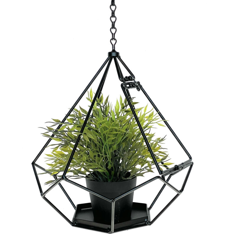 Suspension décorative avec pot intégré, chaîne en fer et crochet pour l'intérieur et l'extérieur, au look industriel. Diamètre du pot : 15 cm - Hauteur : 7,5 cm. Comprend un pot poli. Porte-plantes décoratif avec pot intégré et chaîne en fer, adapté à l'intérieur et à l'extérieur, au look industriel. Placez vos plantes préférées dans le porte-bouquet, qu'il s'agisse d'herbes aromatiques, de menthe, de fleurs ou de plantes succulentes, très stable et résistant aux intempéries. Facile à planter et à décorer EN STOCK : DanDiBo Pot de fleurs Intérieur Métal Mur Plantes suspendues 59 cm 96095 S avec pot 6 coins Pendentif pour plantes Pendentif pour fleurs Pot de... Plante Suspendue Artificielle Suspension Murale En Métal, Suspension Murale, Env. 44 X 10CM Cadeaux Pot Suspendu Très stable et résistant aux intempéries. Panier à plantes mural suspendu en osier, Pot de v... - Grandado Couleur : noir - Couleur de la coque : argenté/aspect acier inoxydable poli Dimensions : hauteur totale avec chaîne 59 cm, largeur totale 24 cm Longueur de la chaîne (avec suspension) : environ 21 cm. Dimensions : hauteur totale avec chaîne 59 cm, largeur totale 24 cm, longueur de la chaîne (avec suspension) env.