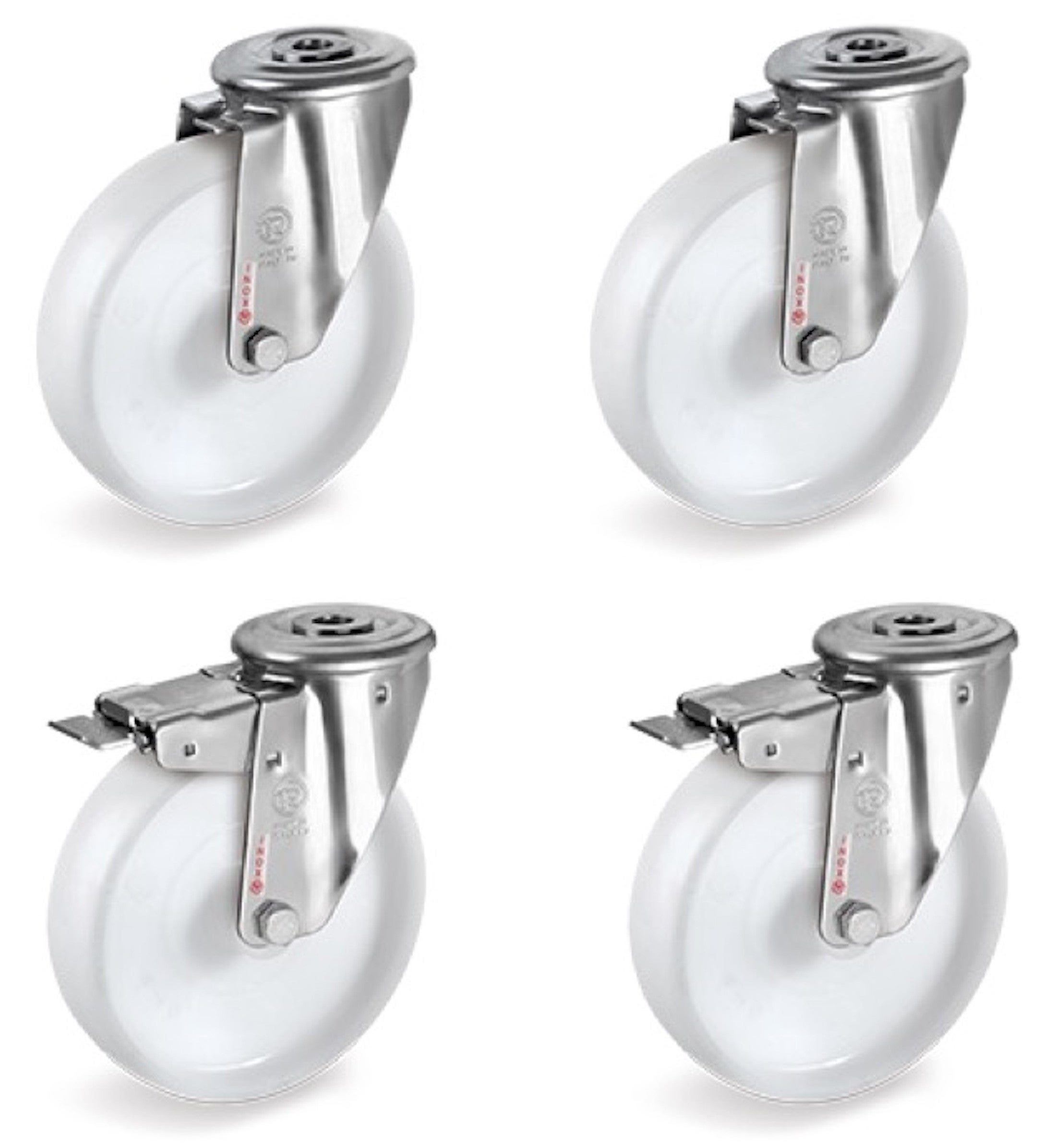 Caractéristiques techniquesBANDAGE : en caoutchouc thermoplastique non tachant, dureté 80 Shore ACORPS : en polypropylèneEmploisIndiquées pour des chariots ayant des charges légères, même en présence d'obstacles et pour des utilisations mixtes intérieures-extérieures. Roue sur moyeu lisse: oui CASCOO SETSPSP200N2U6R1W Lot De 4 Roulettes Pivotantes En Roulette Oeil Pivotante 100mm Lot De 4 Roulettes à Oeil Pivotantes Et Pivotantes à Frein Diamètre 125 Roue Pivotante Charge: 270 Kg sur 4 roulettes Kit bandage caoutchouc thermoplastique noir avec platine de montage... SolsIndiquées pour tous les types de sol, même pour une utilisation en extérieur. Elles n'endommagent ni tachent les sols. Elles permettent un facile dépassement des obstacles. Lot de 4 roulettes pivotante 100 mm avec freins capacité 500 kg.