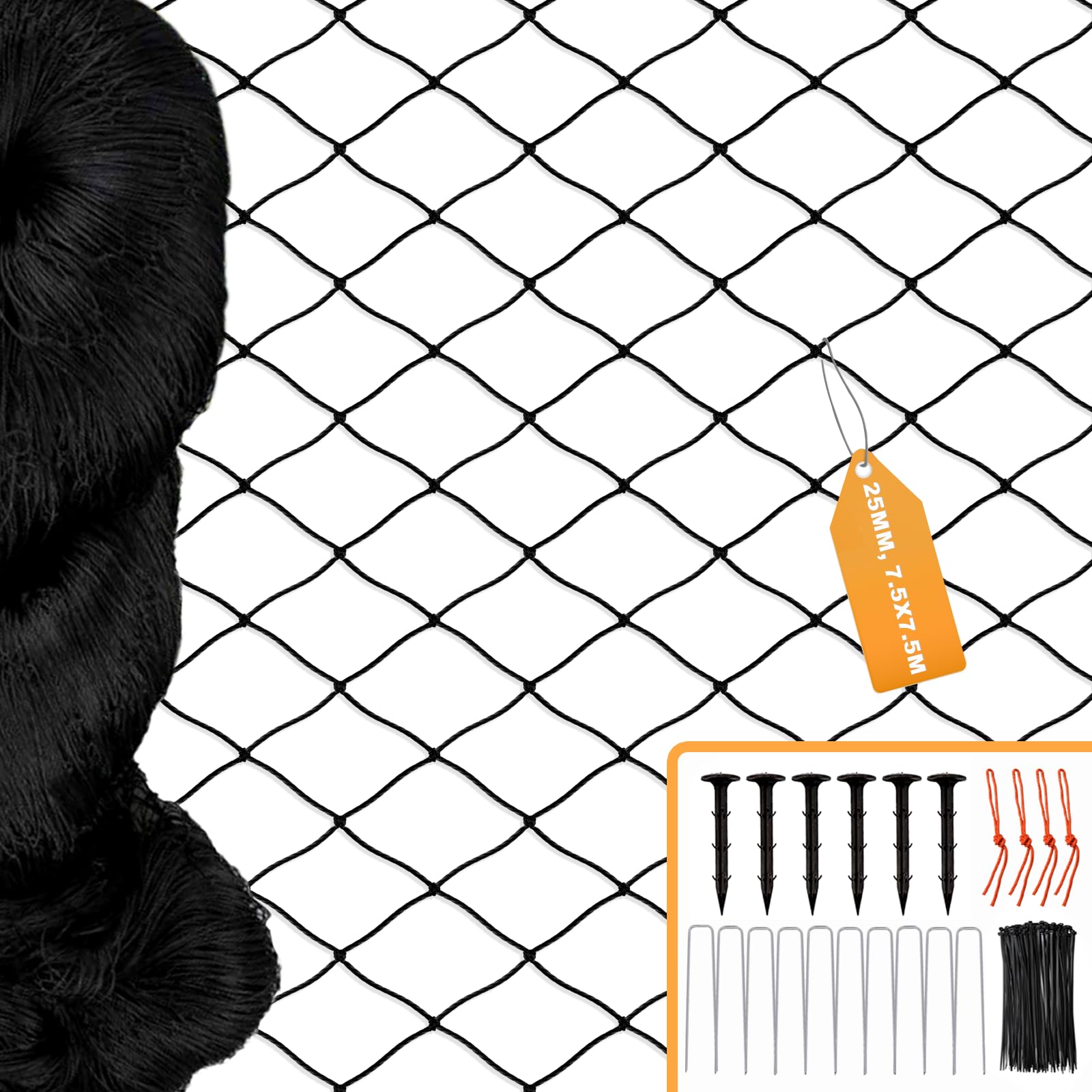 Filet Anti Oiseaux - TRAHOO - 7.5M X 7.5M - Nylon - Protection du Un de projet ? Contactez-nous ! Nos filets sont fabriqués sur mesure, vous pouvez donc commander un très petit filet de moins d'un mètre et de très grands filets de plusieurs dizaines de mètres. Les mesures ne sont pas limitées, il suffit de choisir une dimension en fonction des mailles du filet choisi Caractéristiques : mailles serrées, solides, s'adaptent à l'environnement, résistant aux dommages et réutilisable, résistant aux UV et aux intempéries. Il fait 7.5m x 7.5m, avec des mailles de 2.5cm – assez serrées pour bloquer les oiseaux mais laisser passer l'air et la lumière. En polyéthylène résistant... Filet Voliere Filet Anti Oiseaux - TRAHOO - 7.5M X 7.5M - Nylon - Protection Du Jardin Contre Les Animaux Filet Volière Utilisation : le filet d'arbre contre les oiseaux est surtout utilisé pour protéger les plantes et arbres fruitiers comme par exemple Cerisier ou baies comme les myrtilles et les cassis. Le filet anti-oiseaux peut être monté dans le jardin ou sur le balcon.