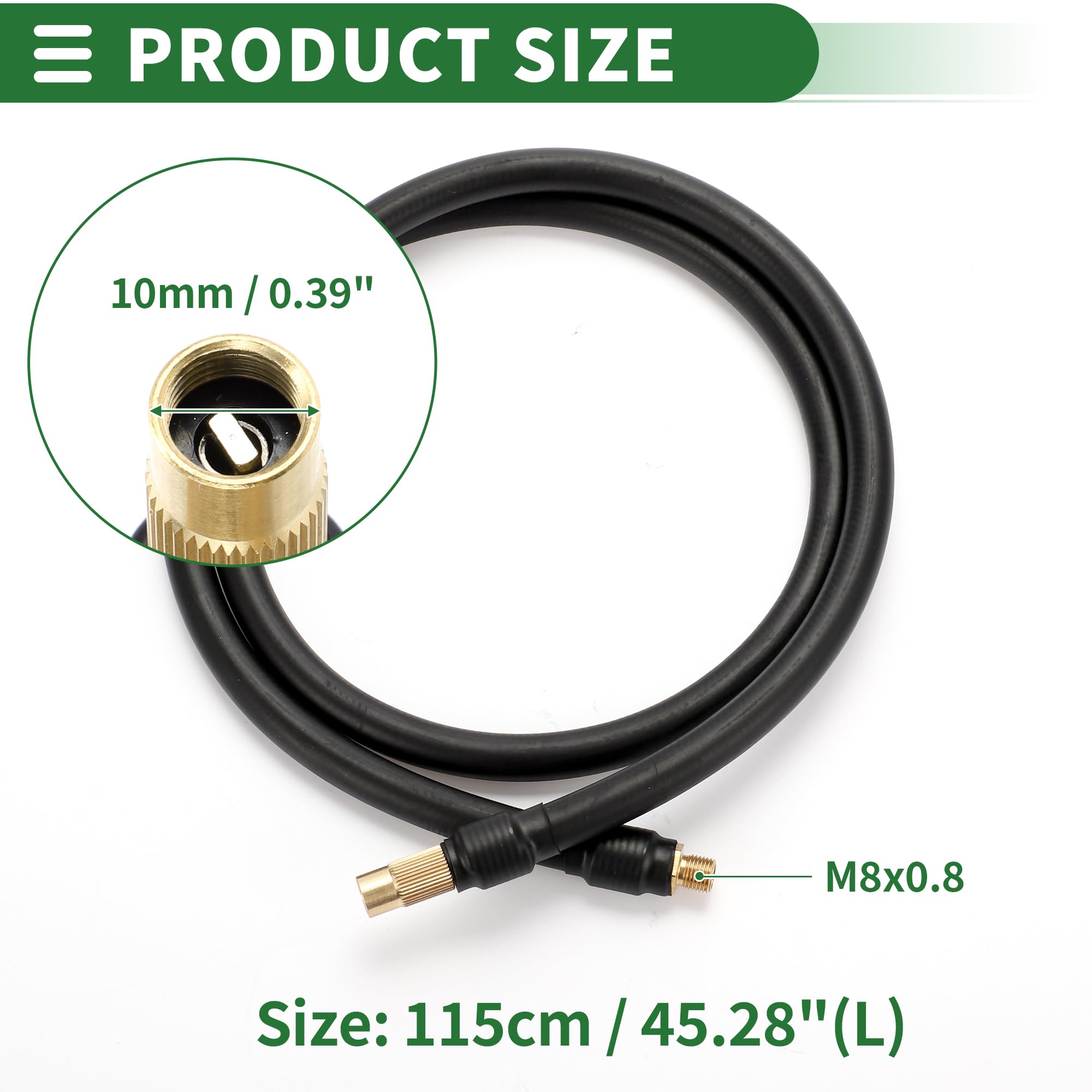 Performance :Le tuyau allongé est rapide et facile à fixer et à retirer sans perdre d'air dans le processus. Conseil :Veuillez autoriser des différences de 3 à 5 mm en raison de la mesure manuelle. Durable et pas facilement endommagé. QUARKZMAN 2m Voiture Pneu Gonfleur Rallonge Tuyau Mandrin Adaptateur Motoforti Adaptateur universel M6 pour pompe à air, tuyau d'extension de valve de pneu, 20 cm de long, caoutchouc cuivre, noir : : AutoAjustement universel... Tube D'extension De Gonfleur De Pneu, Adaptateur De Tuyau De Gonfleur Valve De Pneu Extension De Pompe Voiture Tuyau De Pompe A Pneus 40 Cm 83620451 Vous fait gagner beaucoup de temps et permet des gonflages beaucoup plus précis. Contenu de l'emballage : 1 tuyau de gonflage de pneu Contenu de l'emballage :1 tuyau de gonflage de pneu Caractéristiques :Couleur : Noir, ton orMatériau : Caoutchouc, métalTaille : 10 cm / 3,94 po (L)Taille du filetage du connecteur : M8x0., 8Diamètre extérieur des connecteurs : 10 mm / 0,39 poType de connexion de pneu : Raccord rapideType d'adaptateur de gonfleur : 0,305 pouce x 32 TPIGuide d'installation :Vissez l'extrémité de l'adaptateur sur le tuyau de gonflage d'origine, appuyez pour fixer la tête de l'adaptateur sur la valve du pneu, démarrez le gonfleur pour un gonflage rapide et sans fuite. Fabriqué en : L'adaptateur de valve de gonfleur de pneu est en caoutchouc, résistant à la corrosion, résistant à l'usure, performances bonnes, durable et flexible.