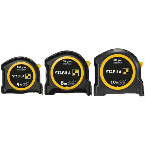 Ce mètre ruban tient parfaitement dans la main et convainc par son boîtier incassable ainsi que son revêtement résistant à l'usure. Innovant: le clip stable arrondi garantit une fixation sûre. STABILA Mètre pliant en bois Type 1707, 2 m, blanc, échelle métrique Mètre-ruban à cadre LBM 1000 STEEL STABILA : flexibilité, efficacité et... Fonctionnel : l'échelle double face 1000 permet une lisibilité optimale. STABILA Mètre Ruban De Poche BM 300 10 M Avec échelle De 1000 Double Face, Boîtier Incassable PC/ABS, Crochet SPIKES, Clip De Ceinture, Précision MID Le crochet Stabila Spike assure un maintien sûr sur les pièces et la lecture est particulièrement facile grâce à des échelles de chaque côté du ruban. Extrêmement robuste : boîtier en PC/ABS incassable avec revêtement souple STABILA pour protéger contre les chocs durs. La ceinture ou la poche de pantalon sont particulièrement protégées grâce au clip arrondi Stabila. Ruban de poche STABILA BM 300, 10 m, ruban de mesure avec échelle métrique double face, boîtier PC/ABS incassable, crochet SPIKES, clip ceinture, précision MID EXTRÊMEMENT ROBUSTE : boîtier PC/ABS résistant aux chocs avec gaine Softgrip absorbant les chocs pour protéger la bande de roulement contre les chutes et les chocs violentsRÉSISTANT : la gaine en NYLON WRAP STABILA extrêmement...