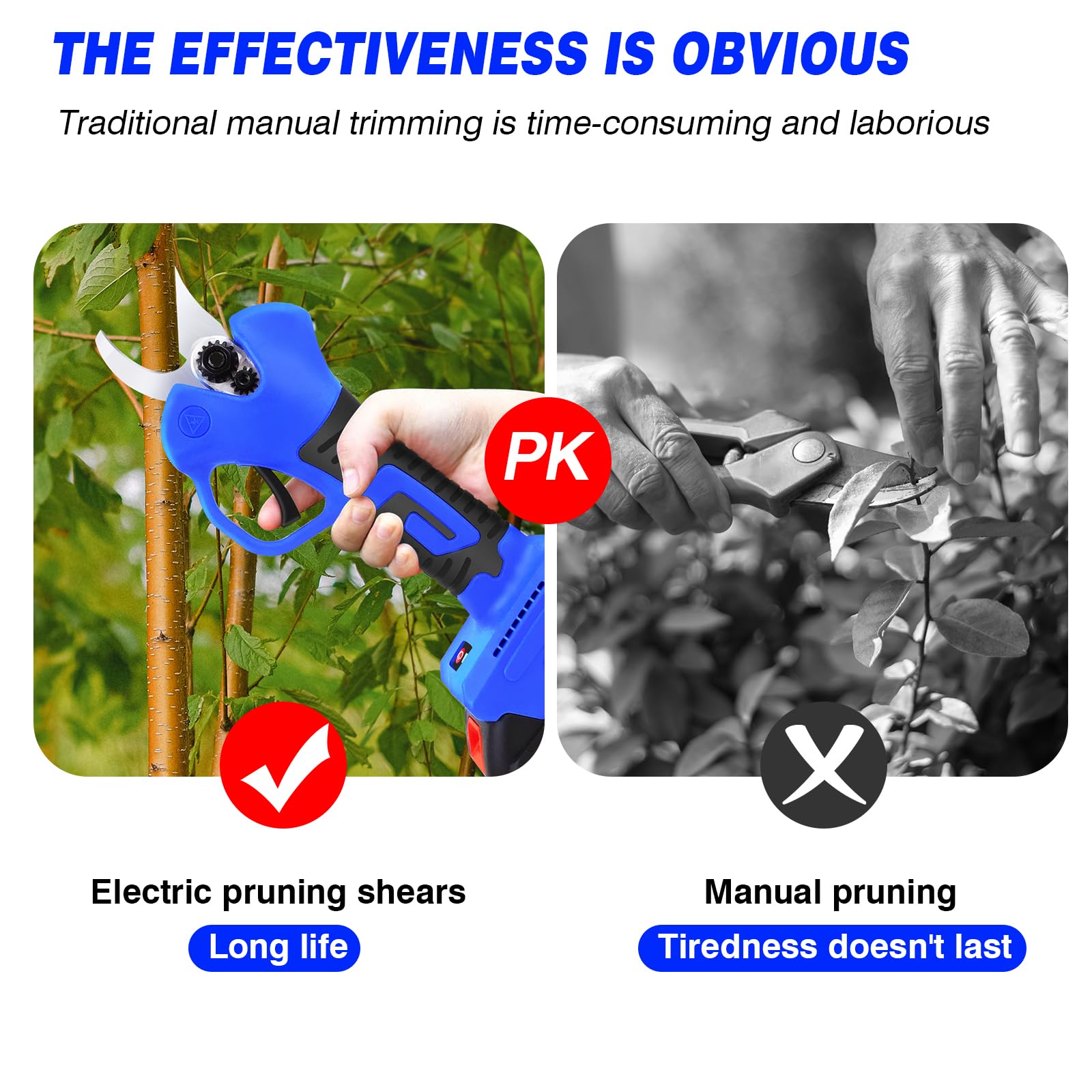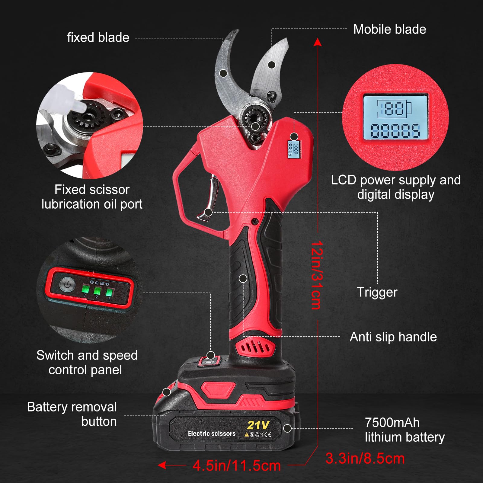 Il peut couper les vignes, les cerisiers, les pommiers, etc. 【Diamètre de coupe jusqu'à 28 mm】- Les lames de notre élagueur électrique peuvent facilement couper des branches jusqu'à 28 mm d'épaisseur sans causer de dommages. ✄ La conception sans fil vous permet de dire adieu aux vieux sécateurs électriques, d'élargir votre plage de travail et de rendre la coupe amusante. 【MOTEUR SANS BALAIS DURABLE】 - La puissance de ces ciseaux électriques utilise le moteur sans balais, qui est plus fort, la vitesse est plus rapide, et la branche de coupe est plus facile. Il est 8 à 10 fois plus efficace qu'un sécateur manuel. Spécification : Matériaux principaux : PVC, métal Type de batterie : Batterie Li-ion Puissance : 500 W Coupe max. Le sécateur professionnel sans fil est forgé en acier à haute teneur en carbone et entraîné par un moteur sans balais. Il est très tranchant et durable et peut facilement couper des branches dures jusqu'à 1,1 pouces /28 mm. ⚙️[Fabriqué à partir de matériaux de haute qualité]Ce séca... ✄ Pour votre sécurité, la machine passera en mode « veille » et s'il n'y a pas de coupe pendant 240 secondes, la machine s'arrêtera de fonctionner. Coupe : 28mm Nombre de coupes consécutives : 1500 fois (une batterie,two battery is 3000 times) Matériau de la lame : Acier au carbone Le paquet comprend : 1 x Sécateur sans fil 2 x Lames (1 jeu a déjà été installé sur le produit, et deux lames constituent un jeu) 1 x Gants 1 x Lunettes de protection 1 x manchon 1 x Clé hexagonale 2 x Batterie Li-ion 1 x chargeur 1 x Huile de lubrification 1 x Pierre à aiguiser 1 x Mallette de transport 1 x Instructions 【BATTERIE HAUTE PERFORMANCE】 - Cet élagueur est équipé de 2 batteries rechargeables 21V 1500mAh. Sécateur électrique Sans Fil, Ultrixe, Avec 2 X 1500 MAh Batterie 21V Moteur Sans Balai Secateur Pour Jardinage Secateur Adapte Pour Jardins Branches Potagers Noir 83170892 【LARGE CHAMP D'APPLICATION】- L'élagueuse électrique peut être utilisée dans les jardins, les parcs, les fermes, les vergers, les serres, etc. Secateur Electrique Sécateur électrique Sans Fil Avec 2 Batteries De 21V 2000 MAh Et Lames Sécateur à Batterie Et réduire considérablement la perte d'énergie et la chaleur causée par la friction du moteur, pas besoin de remplacer le balai de carbone, et une durée de vie plus longue. Il peut fonctionner en continu et couper environ 3000 fois après avoir été complètement chargé. ✄ Lame en acier spécial, peut être rapidement taillée, propre et plate, ne blesse pas les branches. Le sécateur électrique sans fil Brushless 21V est conçu pour faciliter la taille et le jardinage, que ce soit pour les arbres fruitiers ou les vignobles. Avec sa grande capacité de coupe, il permet de traiter des branches épaisses avec aisance, économisant ainsi du temps et des efforts dans vos projets d'aménagement paysager Ensuite, vous pouvez appuyer 2 fois sur le bouton pour redémarrer.