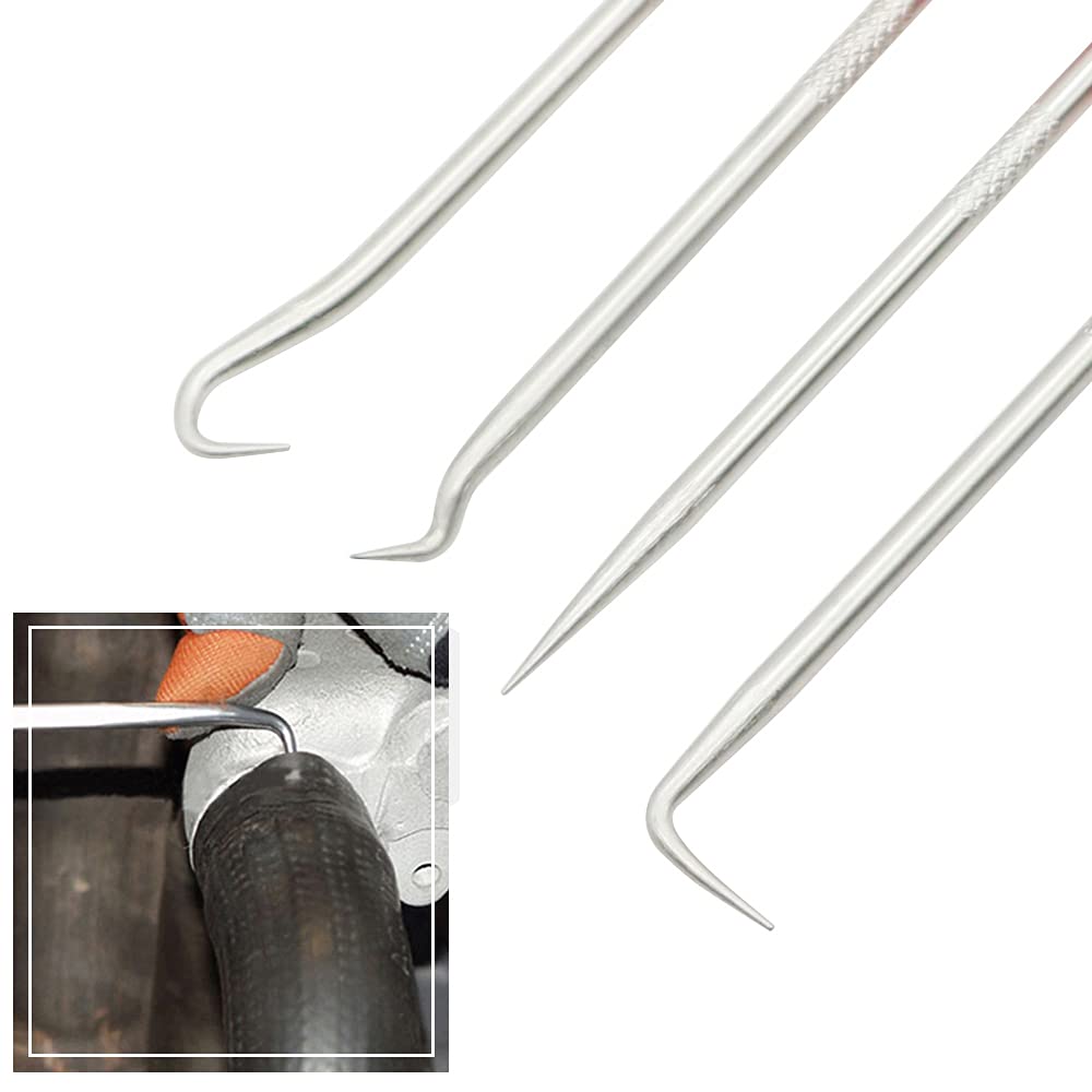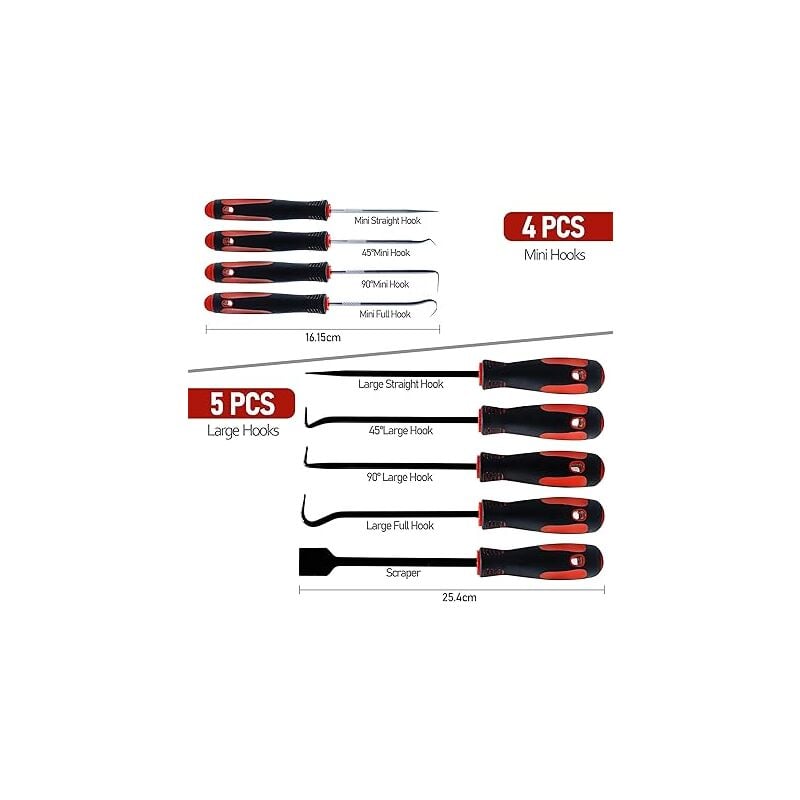 Comprend 4 crochets (1 crochet à 45°, 1 crochet à 90°, 1 crochet à 110°, 1 crochet à 180°). Lorsque vous avez de l'huile et du carburant dans votre main, la poignée antidérapante peut augmenter la prise en main. Ensemble De 10 Crochets Et Médiators Professionnels,Mini Crochets De Precision Pour Retirer Les Joints Etancheite Et Les Joints Toriques 99009736 Variété de formes destinées à exercer un effet de levier ou à tirer des pièces, des ressorts et des clavettes Permet de contourner les câbles, les tuyaux et... Les crochets et crochets de précision sont fabriqués en acier durable, ce qui peut répondre à divers besoins dans des conditions de travail difficiles. Joint Torique Lot De 4 Médiators De Précision Et Crochets Pour Joint D Tournevis Précision Contenu : 1 médiator droit (alène à gratter). 1 crochet complet (crochet complexe)., 1 crochet à 90 degrés 1 crochet d'angle (crochet à 45 degrés). Taille : chaque crochet mesure 15,5 cm. Pratique à transporter. Contenu de l'emballage : 1 poignée de doigt, 2 vis, Multi-usage : ces médiators de mécanicien disposent de pointes ultra-fines et de 4 formes pour tirer les clips, anneaux, fils, joints, rondelles et autres petites pièces. Idéal pour séparer les fils, enlever les petits fusibles, les joints toriques, récupérer les...
